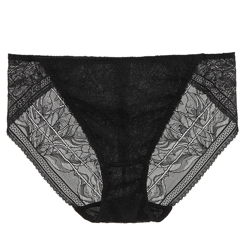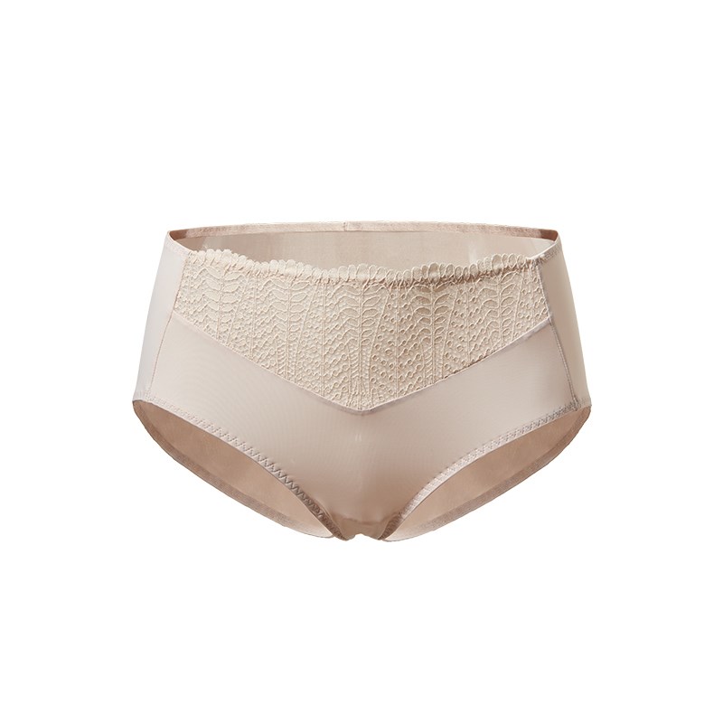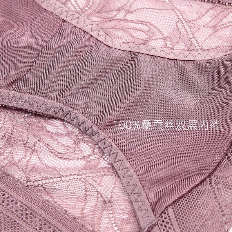 Lomen.DN真丝短裤女中腰蕾丝无痕短裤舒适镂空性感桑蚕丝裆部三角裤LWXSP095