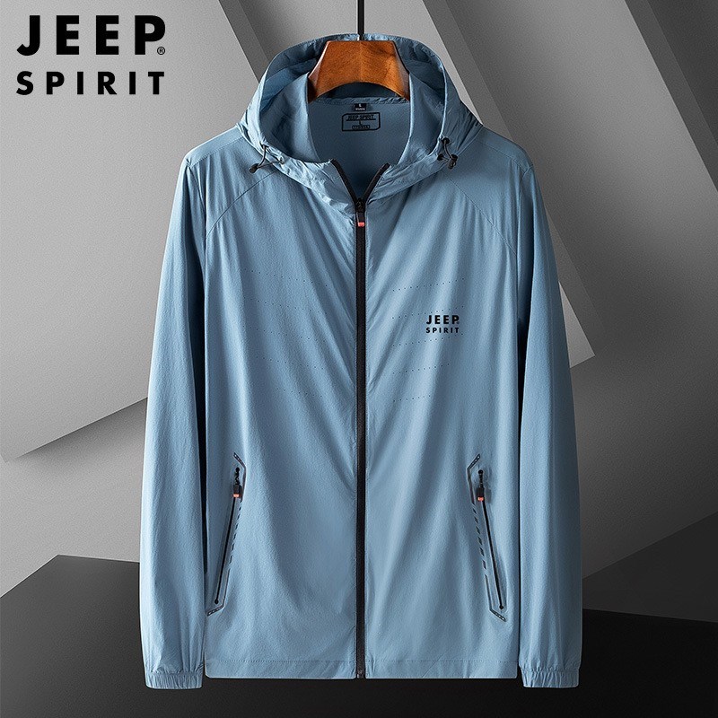 JEEP SPIRIT夏季新款连帽纯色薄款拉链青年宽松型防晒外套YSF0162
