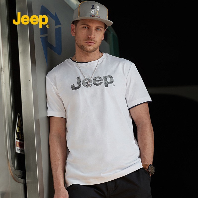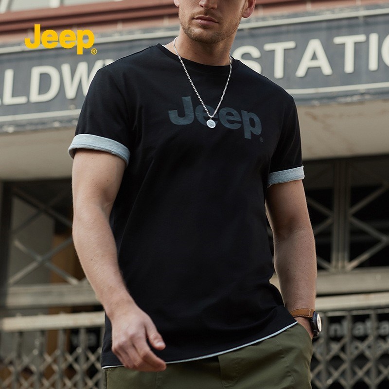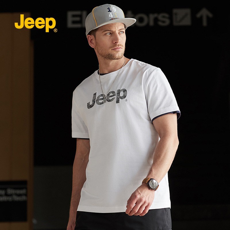 JEEP SPIRIT夏季新款薄款字母棉圆领日常宽松型短袖T恤P212MKT039