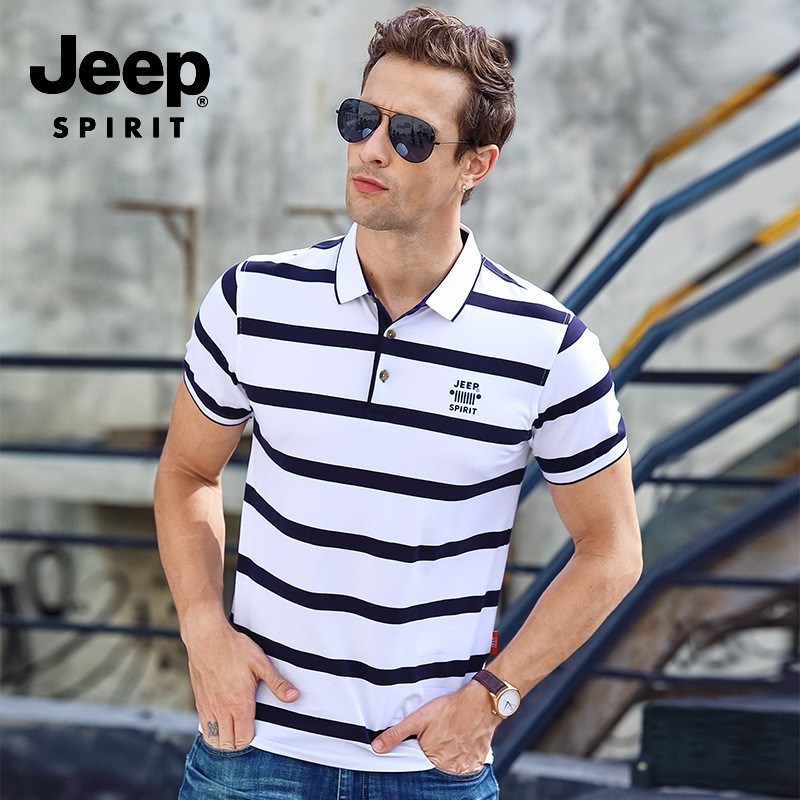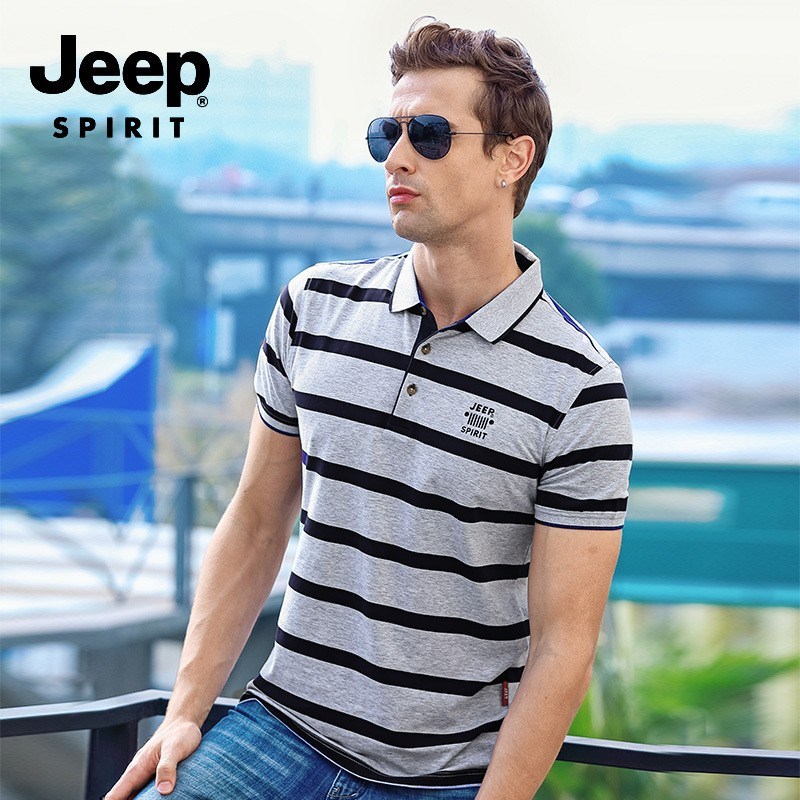 JEEP SPIRIT夏季薄款男士条纹翻领短袖T恤棉质宽松大码男装休闲T恤H-0078