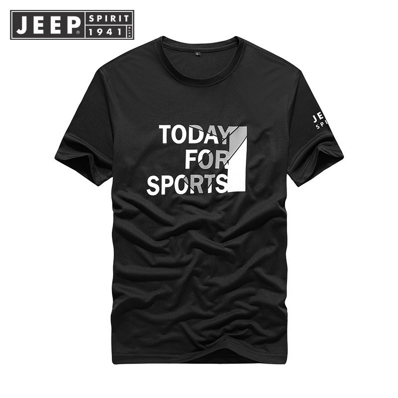 JEEP SPIRIT夏季新款不连帽无领宽松型休闲纯色薄款短袖T恤218703