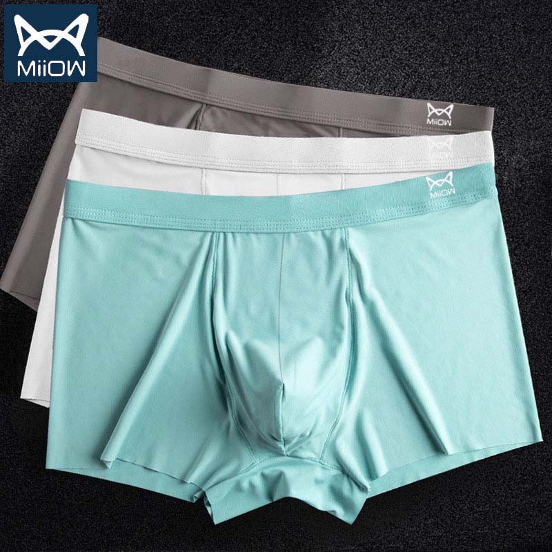 MiiOW/猫人新款无痕冰丝内裤创意3D男士平角裤9918
