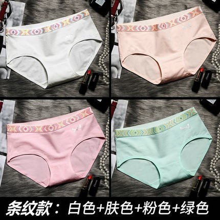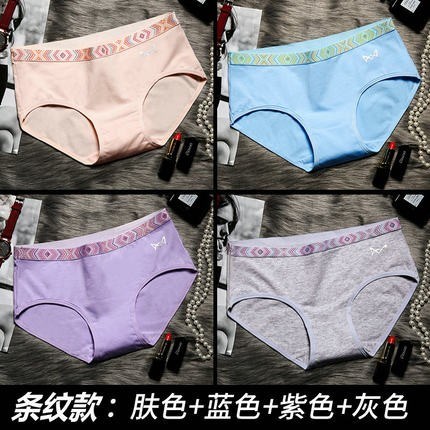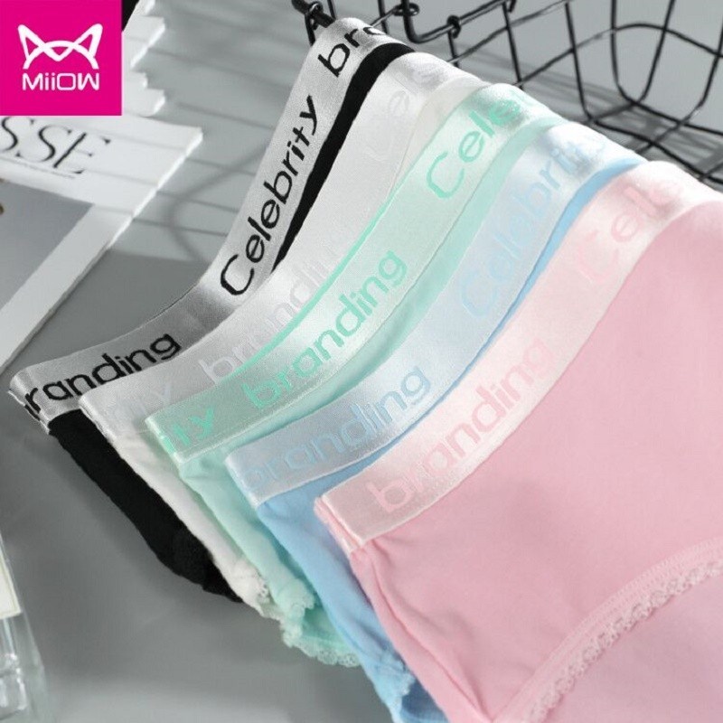 MiiOW/猫人新品无痕抗菌棉款女士内裤4条装性感蕾丝女士三角裤6519