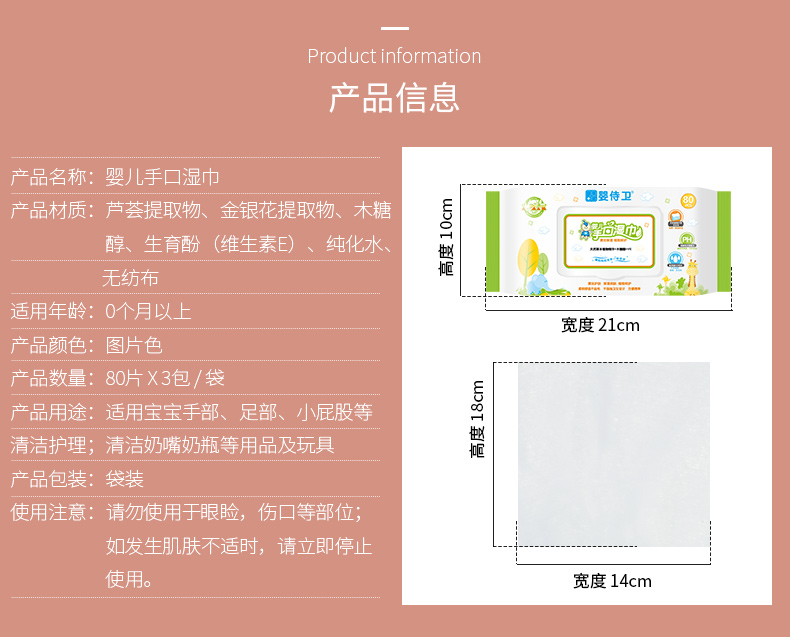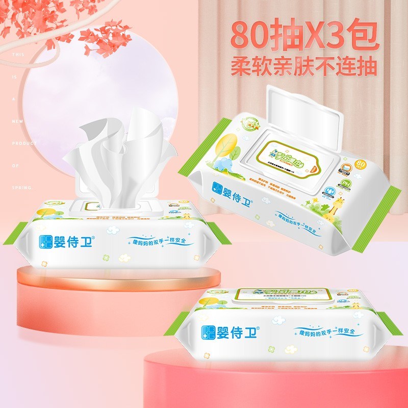 婴侍卫婴儿手口湿巾(80片)3连包 C814(8)