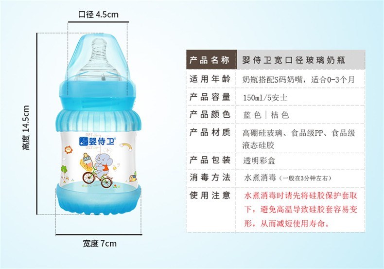 婴侍卫宽口径玻璃奶瓶(150毫升/5安士)PP921