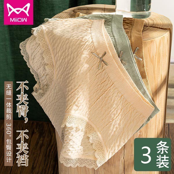 MiiOW/猫人内裤女收腹提臀中腰性感包臀三角裤MRLN003