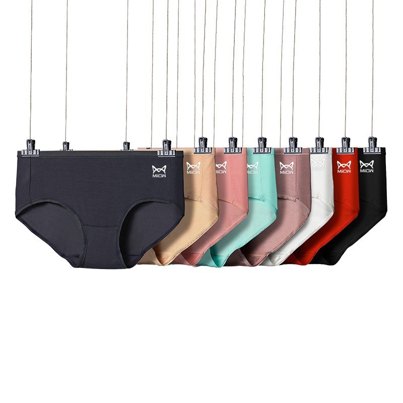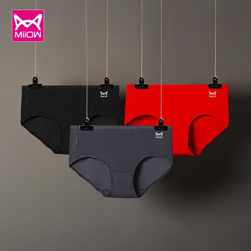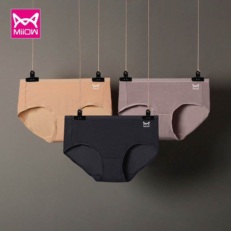 MiiOW/猫人女士内裤80支莫代尔车缝纯色柔软三角裤2527