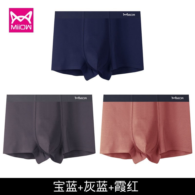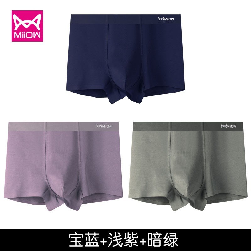 MiiOW/猫人男士内裤平角裤透气抑菌内档无痕棉质JC8008