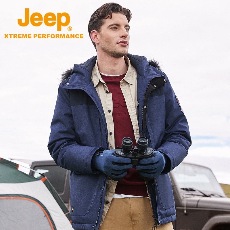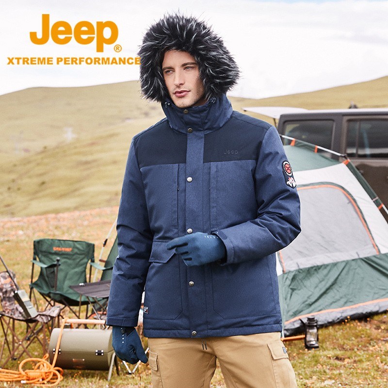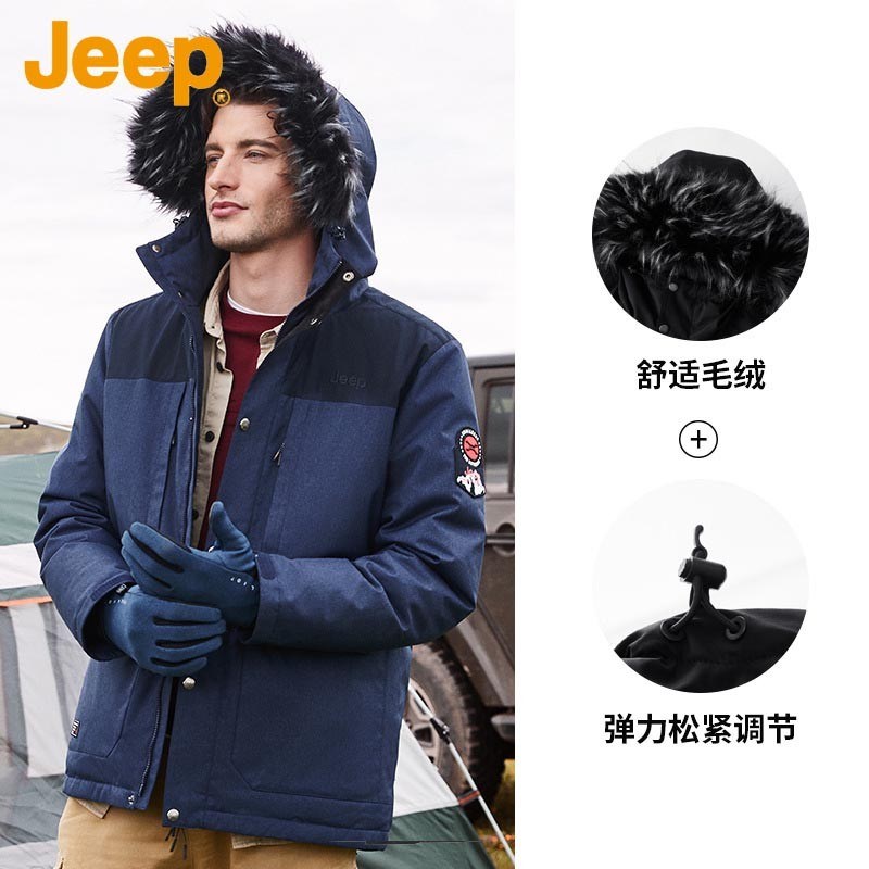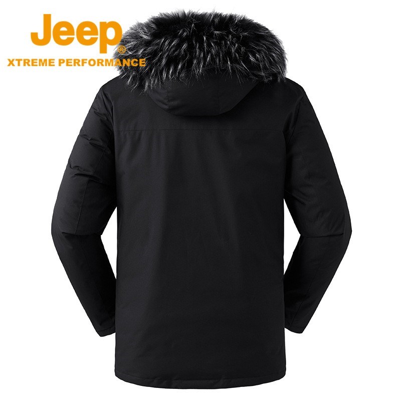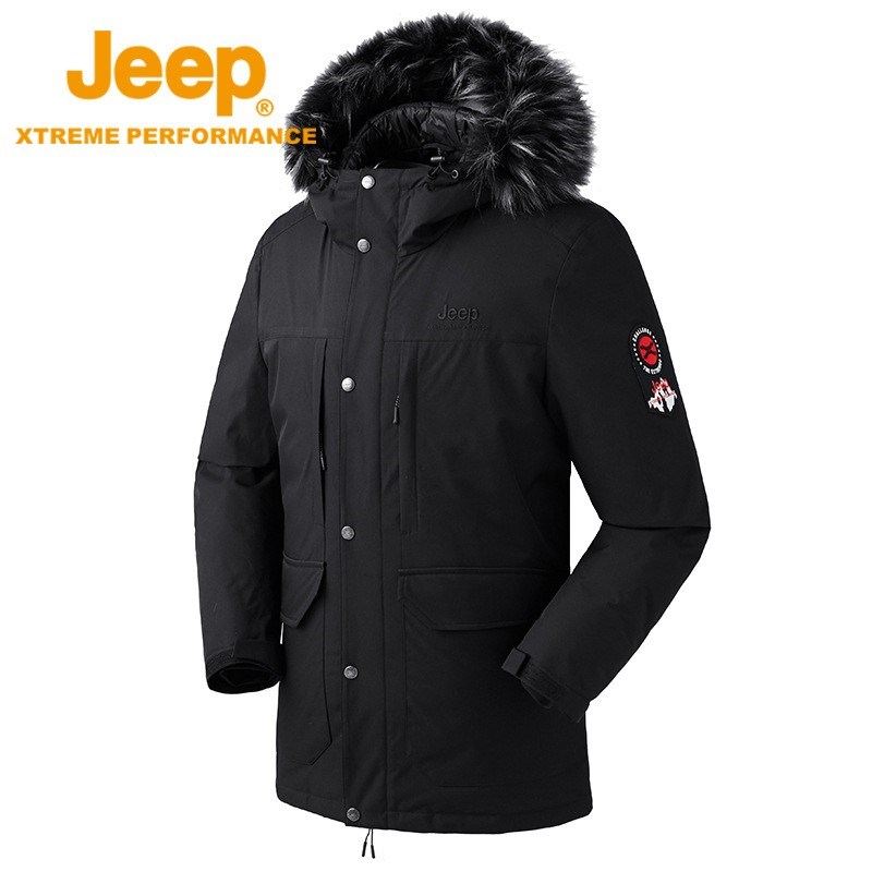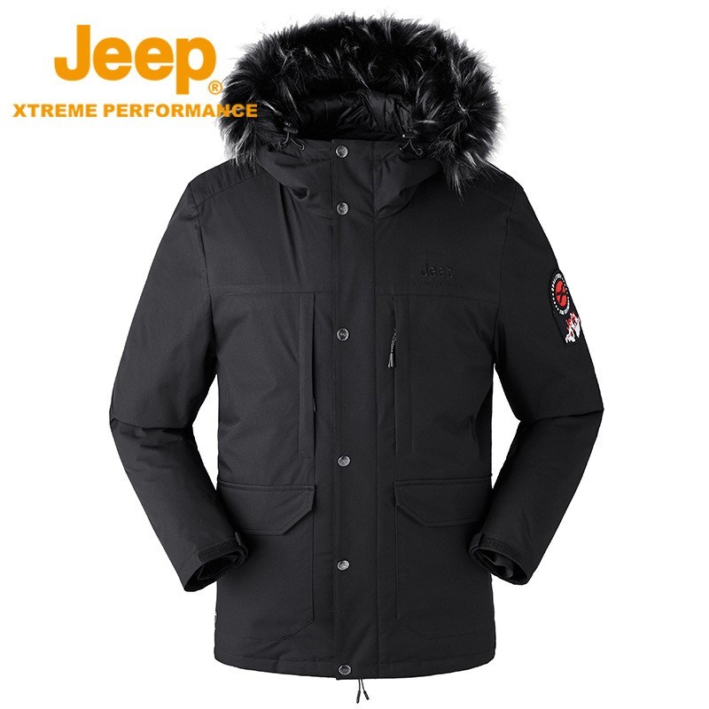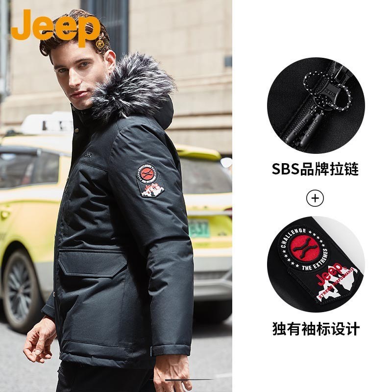 JEEP 户外冬季新款休闲羽绒服男中长款时尚连帽保暖毛领外套J042094745