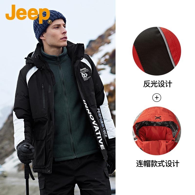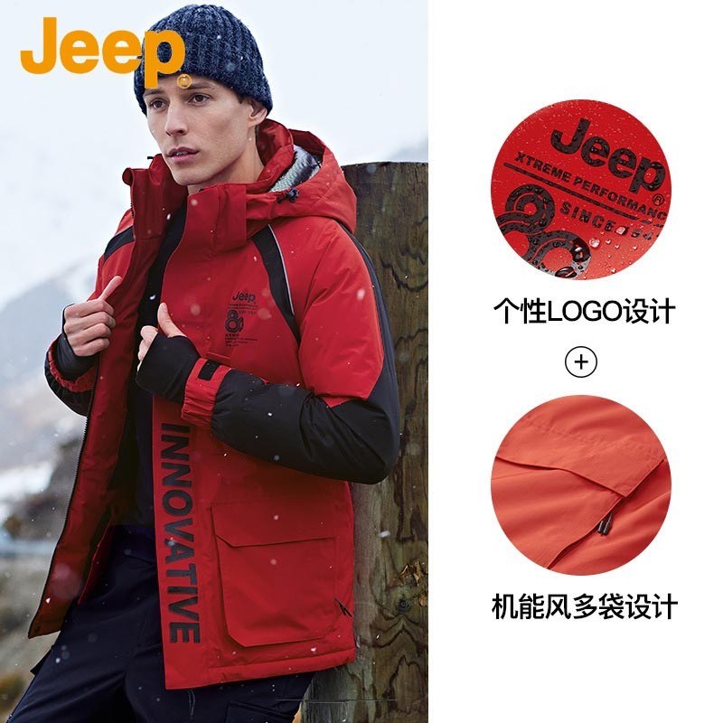 JEEP 雪服防水防风90白鸭绒透气保暖科技面料可拆卸帽冲锋衣男J142094199