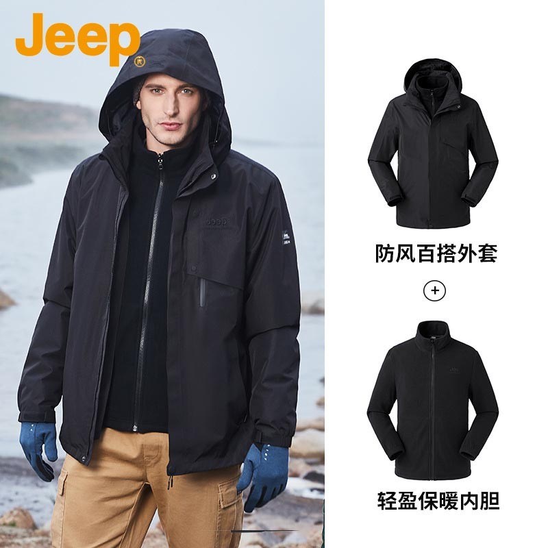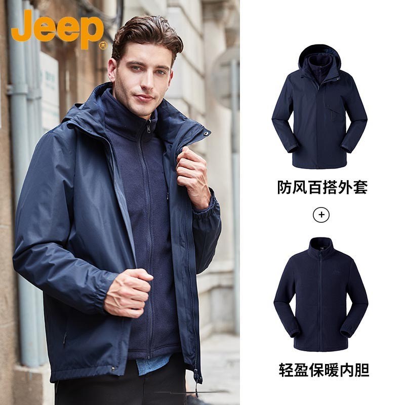 JEEP 户外运动三合一保暖冲锋衣男防风防水透气登山服男装外套J042094075