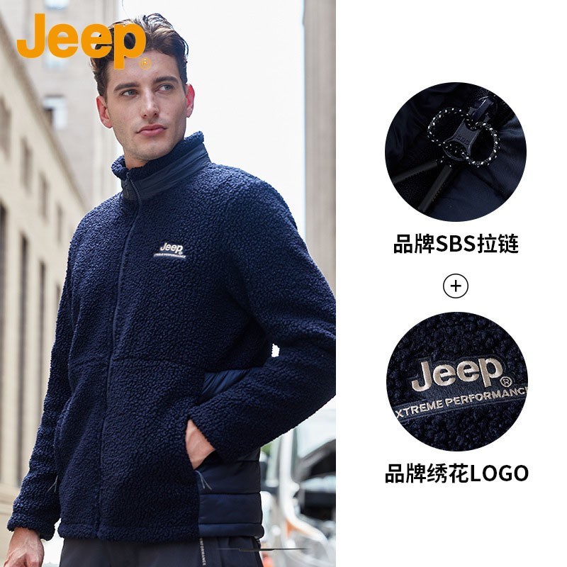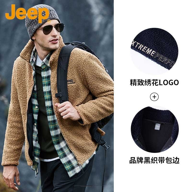 JEEP 中年人男装秋冬装爸爸摇粒绒加厚外套拉链抓绒衣 J032094293