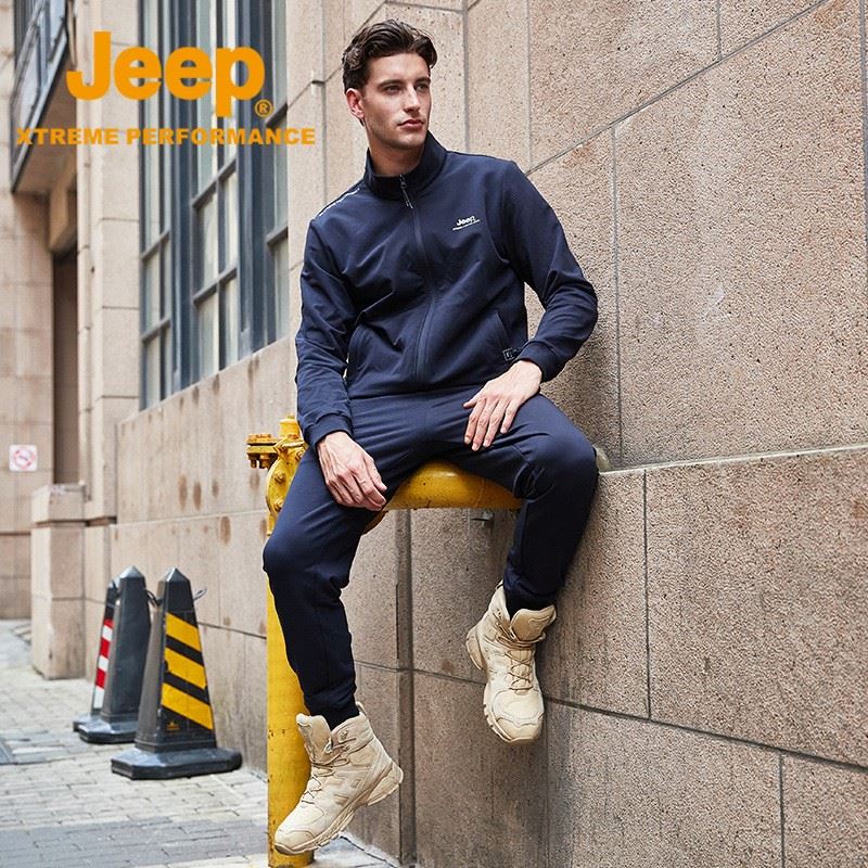 JEEP 户外潮流男款针织套装时尚休闲运动夹克立领套装春秋男J012097701