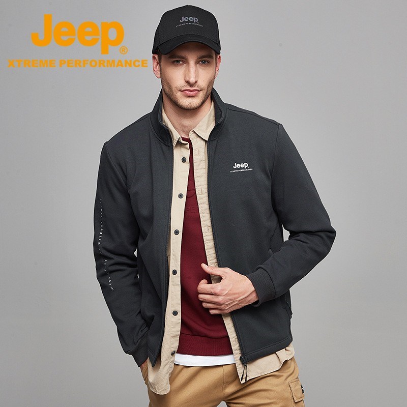 服饰配饰>男装>套头衫/卫衣> JEEP 户外运动外套秋季新款修身针织开衫立领休闲卫衣长袖上衣J032096160