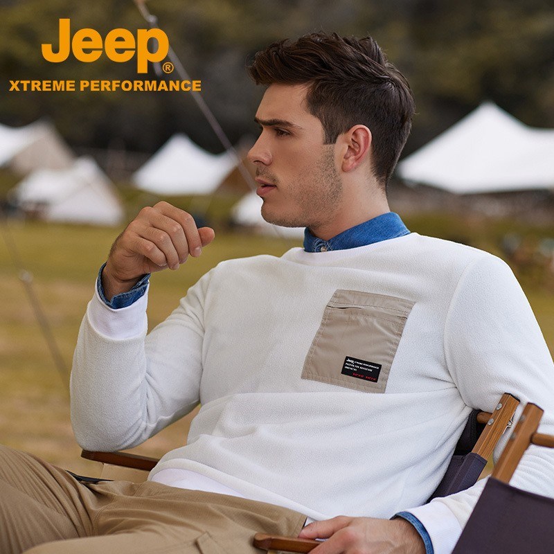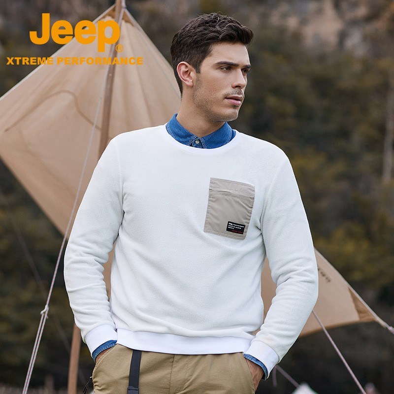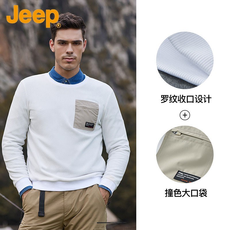 JEEP 时尚卫衣男春秋季新款圆领卫衣商务长袖套头抓绒卫衣上衣J132094284