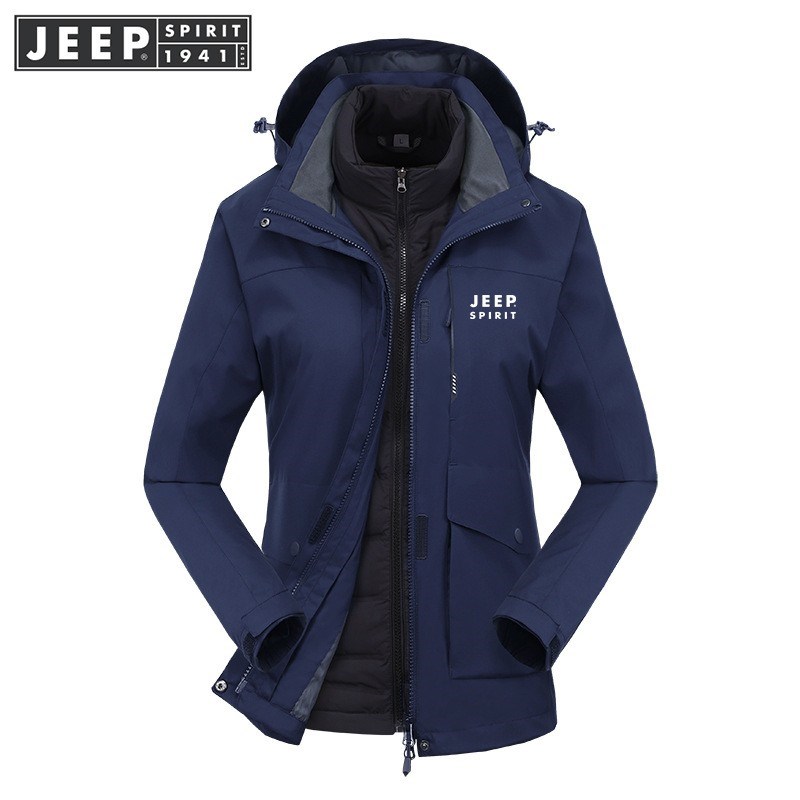 JEEP SPIRIT羽绒冲锋衣秋冬黑色纯色羽绒内胆情侣冲锋衣JP6010