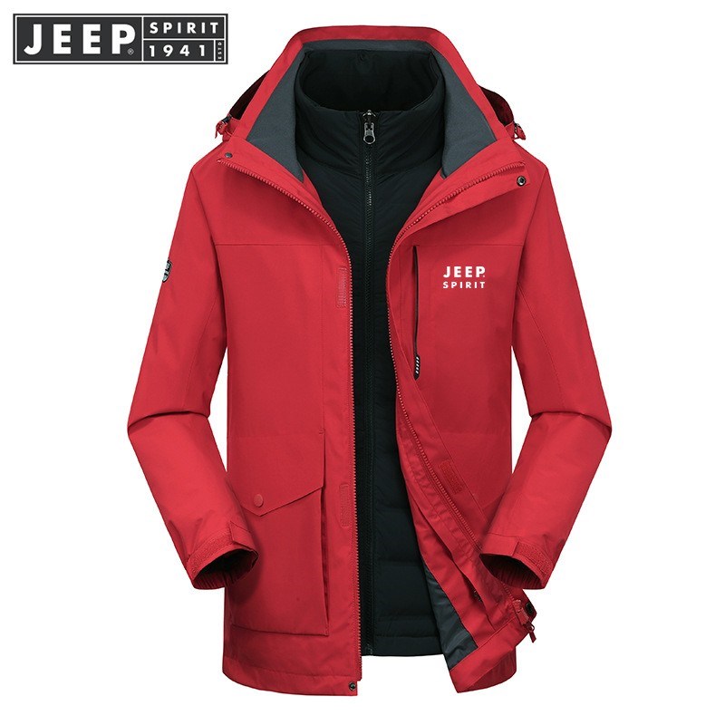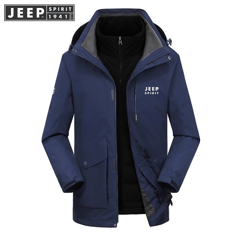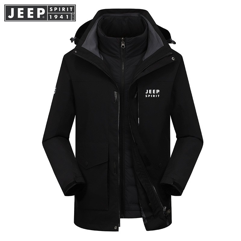 服饰配饰>男装>羽绒服> JEEP SPIRIT羽绒冲锋衣秋冬黑色纯色羽绒内胆情侣冲锋衣JP6010