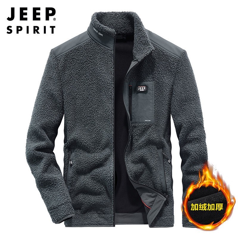 JEEP SPIRIT秋季新款纯色舒适保暖立领加绒抓绒衣外套SSX0918