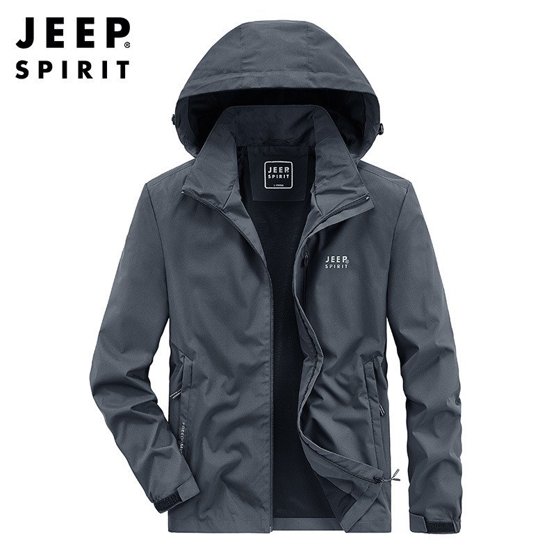 JEEP SPIRIT秋季新款青年连帽纯色休闲侧缝插袋拉链夹克AG0971
