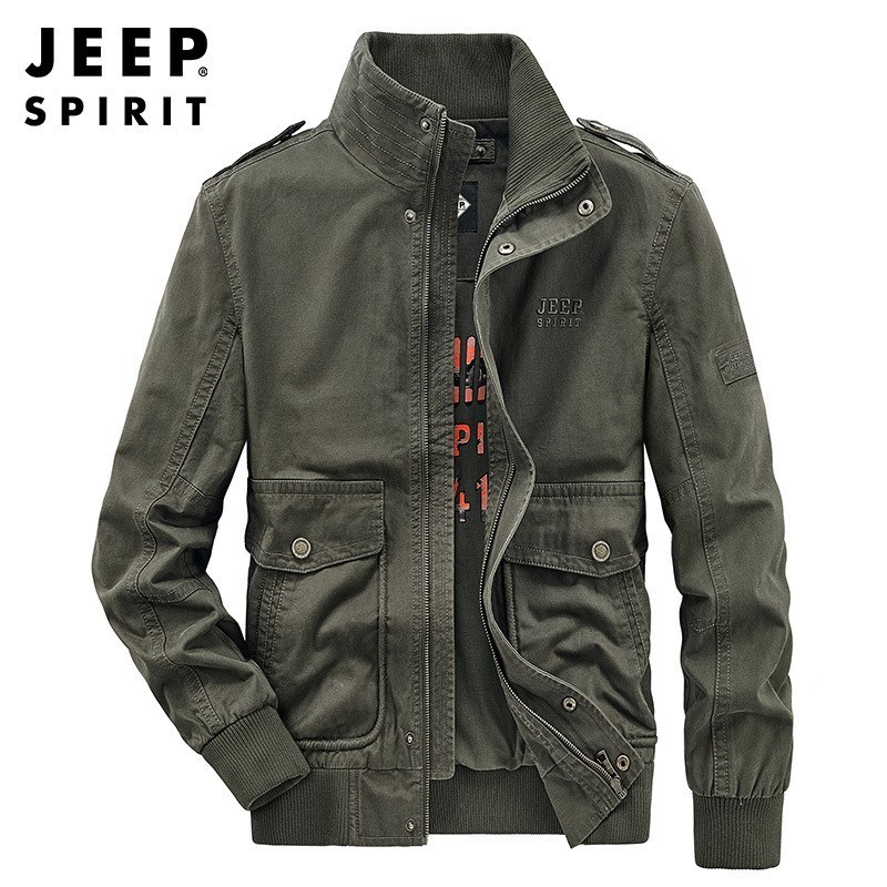 JEEP SPIRIT秋季新款棉拉链袋盖挖袋纯色休闲青年夹克JPL0981