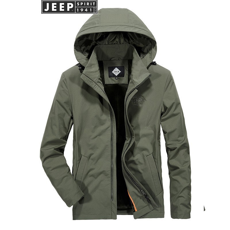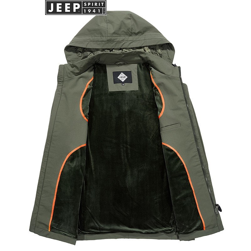 JEEP SPIRIT秋冬加绒连帽夹克多袋防风大码男加厚冲锋夹克外套1510