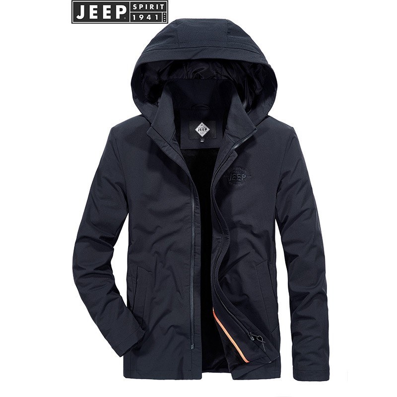服饰配饰>男装>外套/夹克> JEEP SPIRIT秋冬加绒连帽夹克多袋防风大码男加厚冲锋夹克外套1510