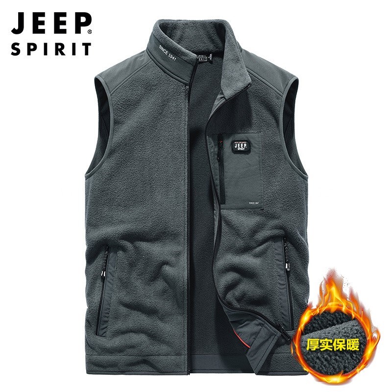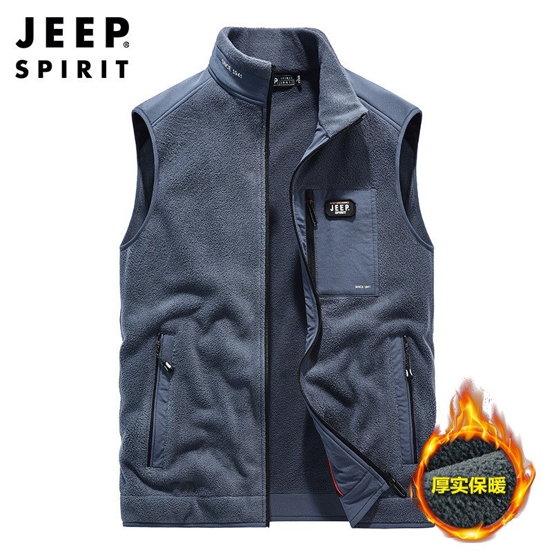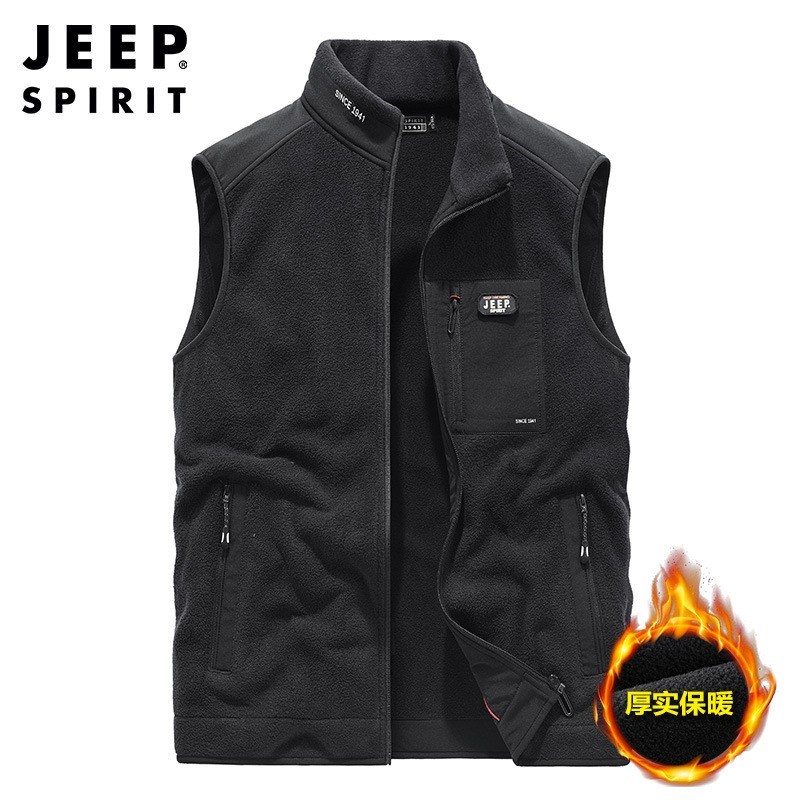 JEEP SPIRIT秋季新款纯色加绒保暖舒适立领摇粒马甲SSX0950