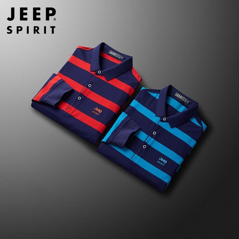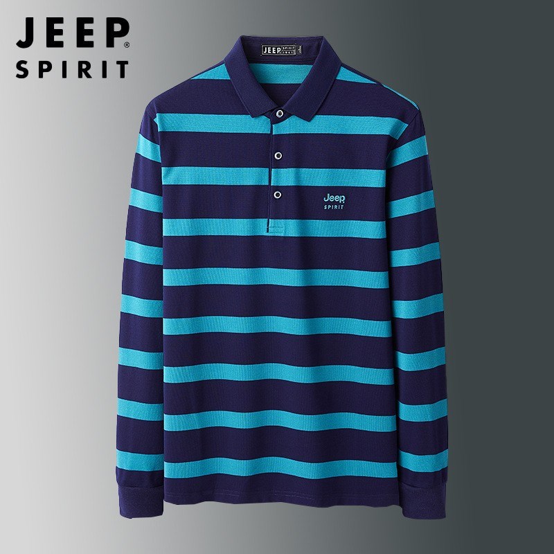 JEEP SPIRIT春秋新款男士长袖POLO衫舒适小方领商务男条纹针织衫HB85T05