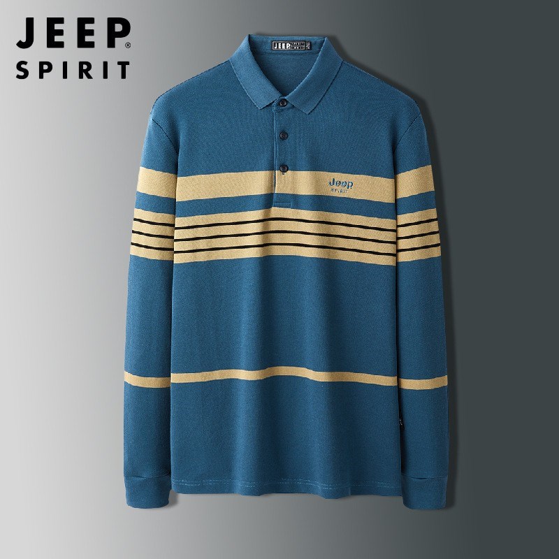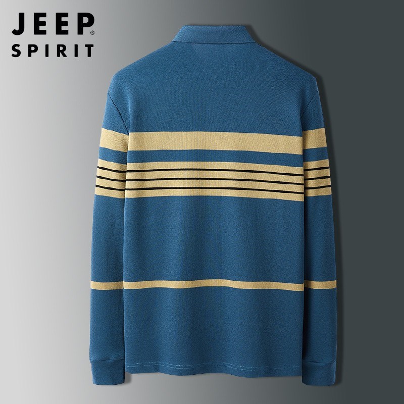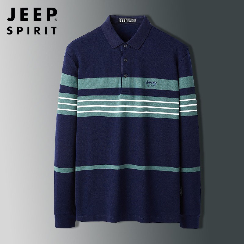JEEP SPIRIT男士长袖t恤纯棉春秋季新款翻领中青年商务男士POLO衫条纹T恤HB85T832
