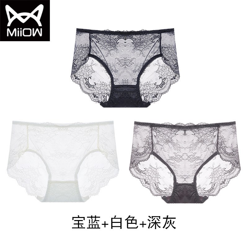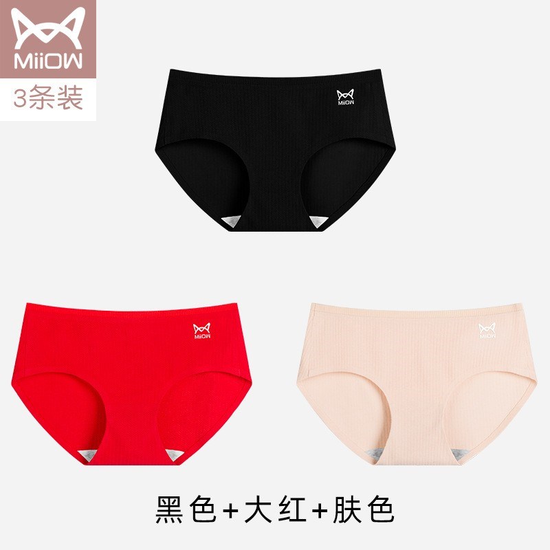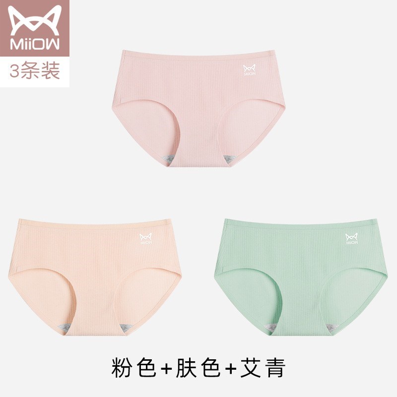 MiiOW/猫人内裤女士性感包臀中腰双层内档三角裤JC9996