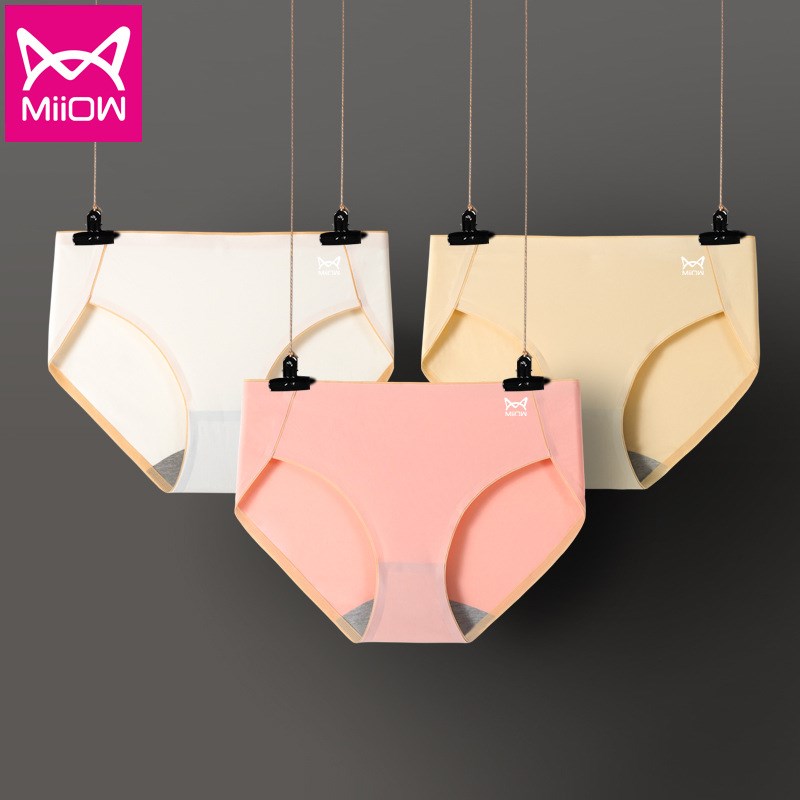 MiiOW/猫人内裤女士性感无痕包臀中腰双层内档三角裤JC996