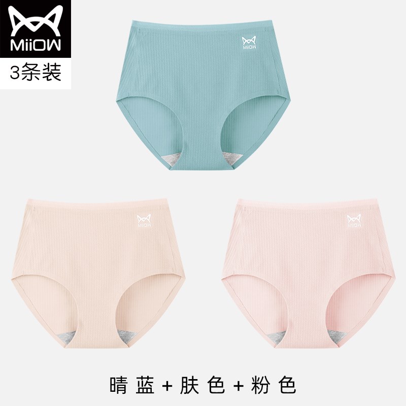 MiiOW/猫人内裤女士性感无痕包臀中腰双层内档三角裤JC996