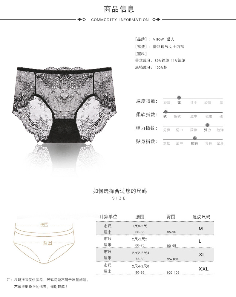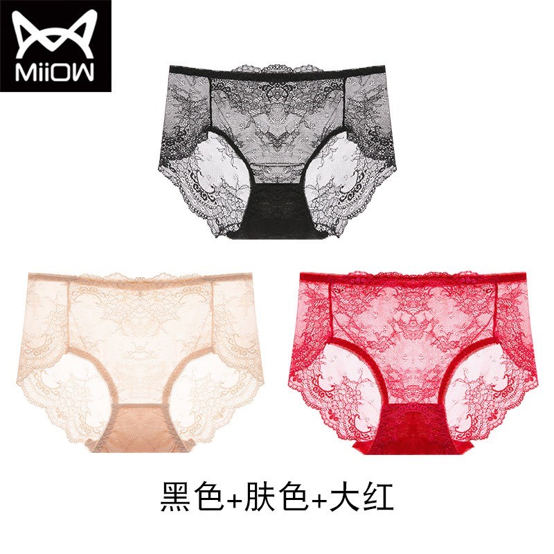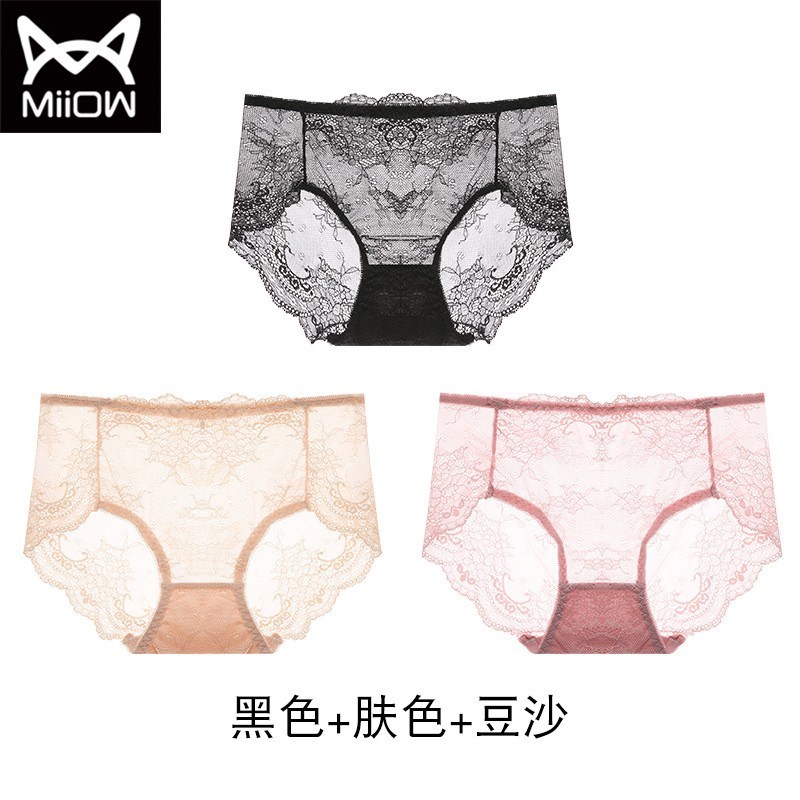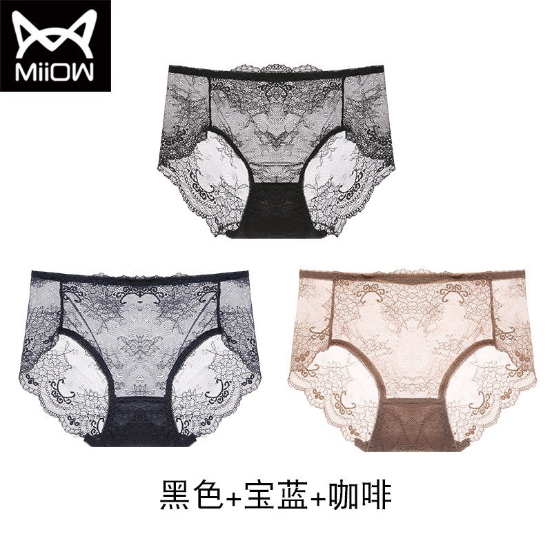 MiiOW/猫人3条装内裤女性感透气女士三角裤镂空棉档女内裤JC1911