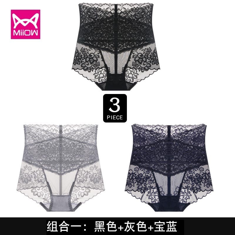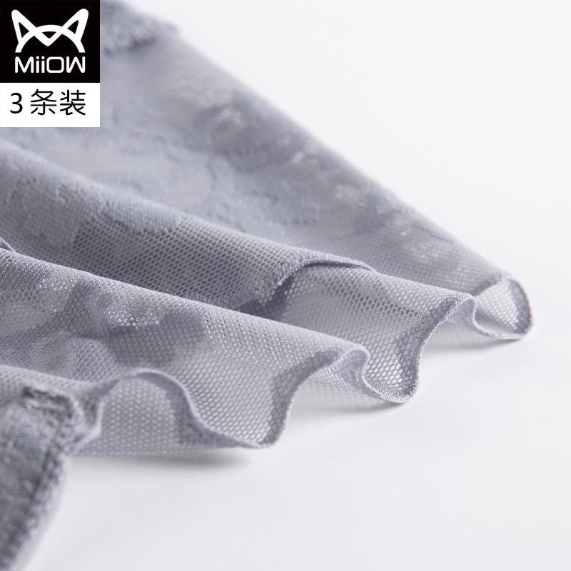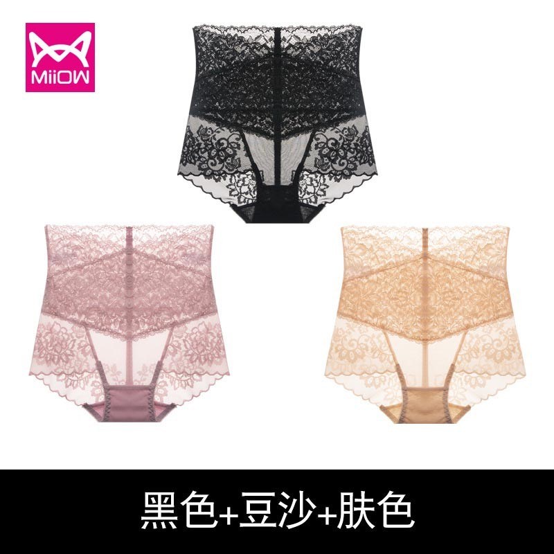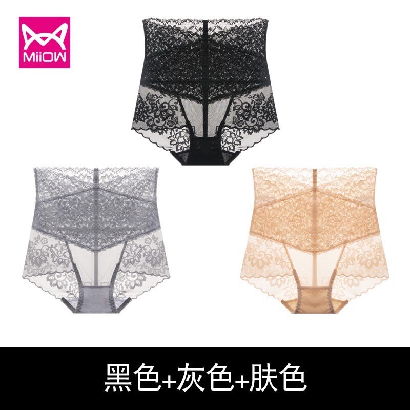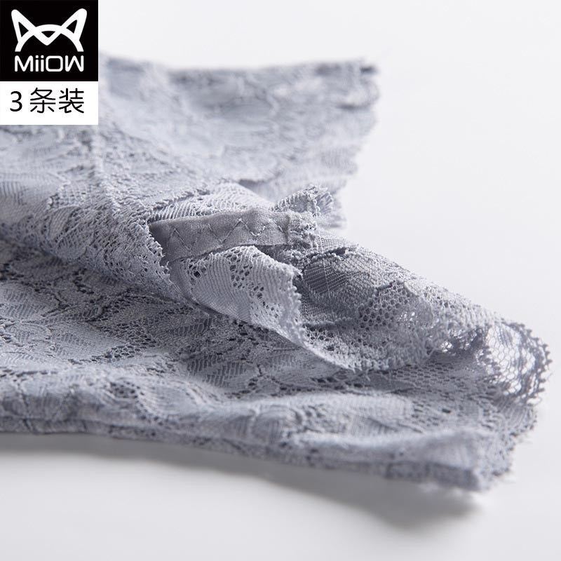 MiiOW/猫人3条装内裤女性感女士高腰蕾丝三角裤镂空高弹提臀棉档女内裤JC6919