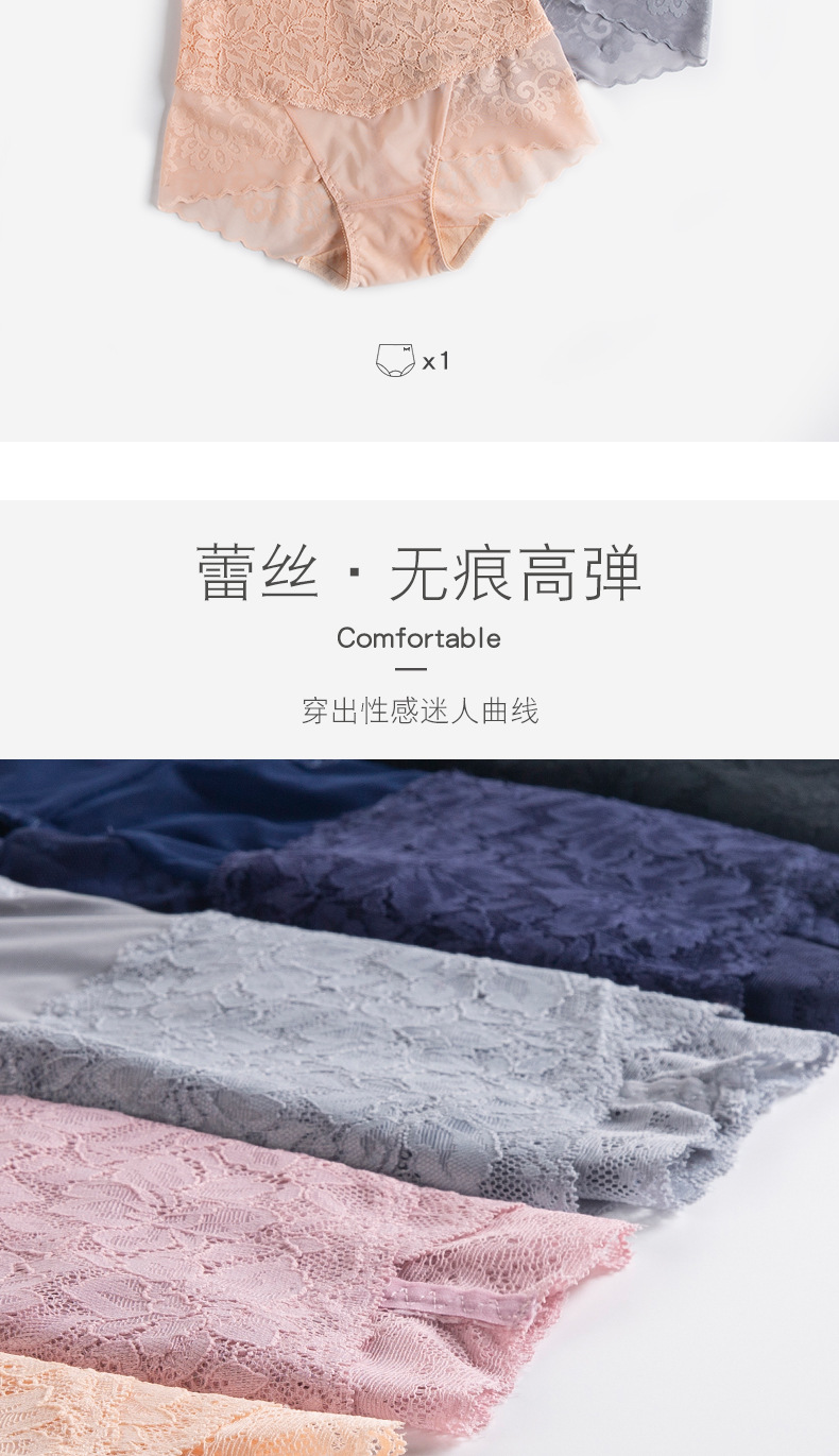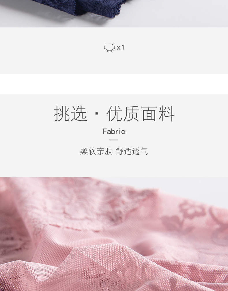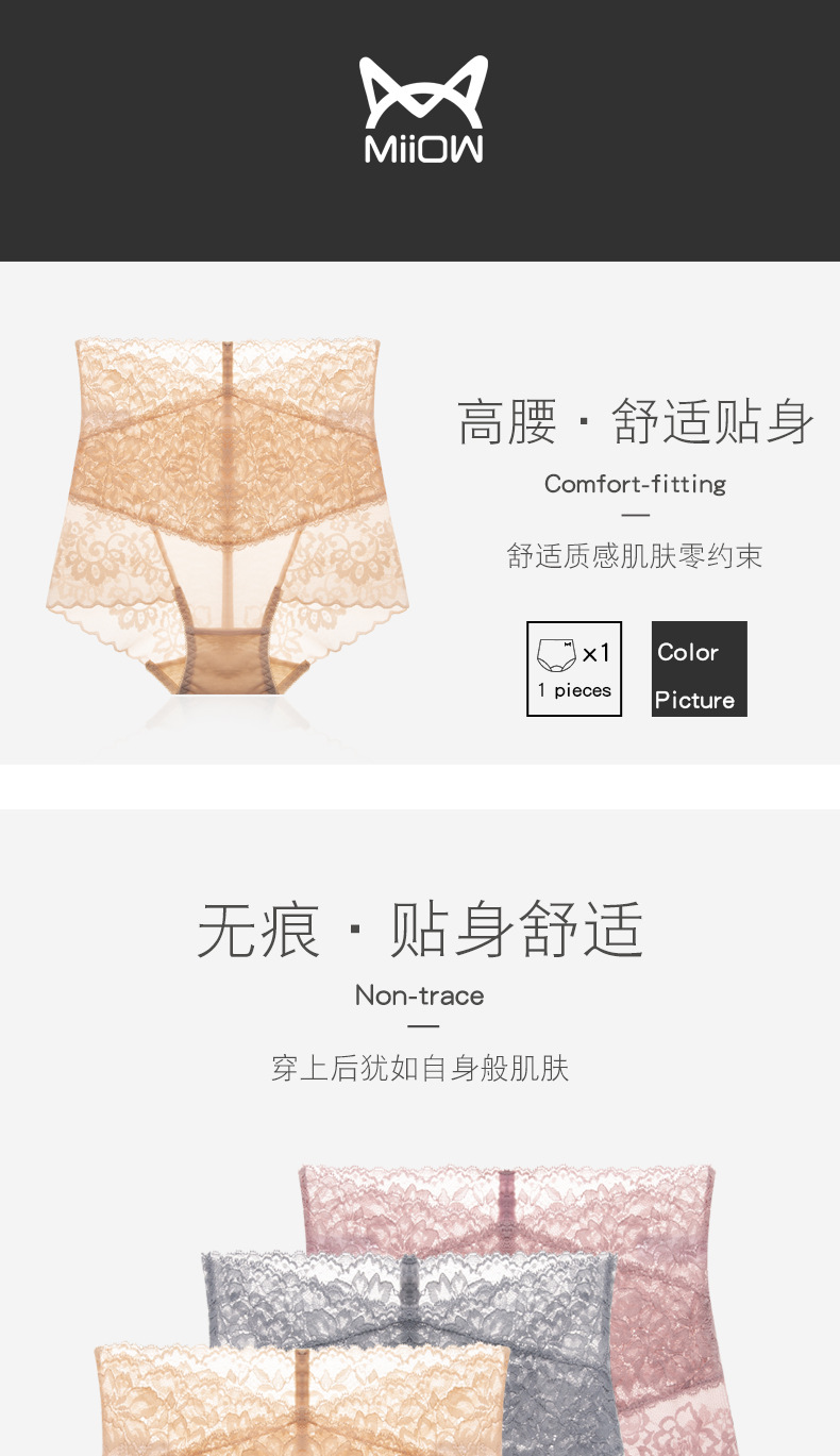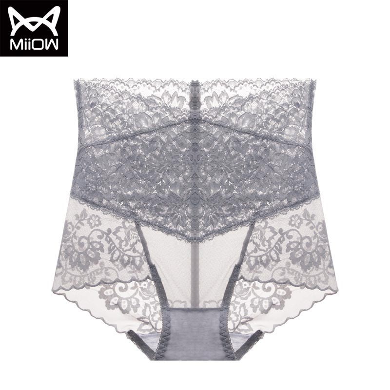 MiiOW/猫人3条装内裤女性感女士高腰蕾丝三角裤镂空高弹提臀棉档女内裤JC6919
