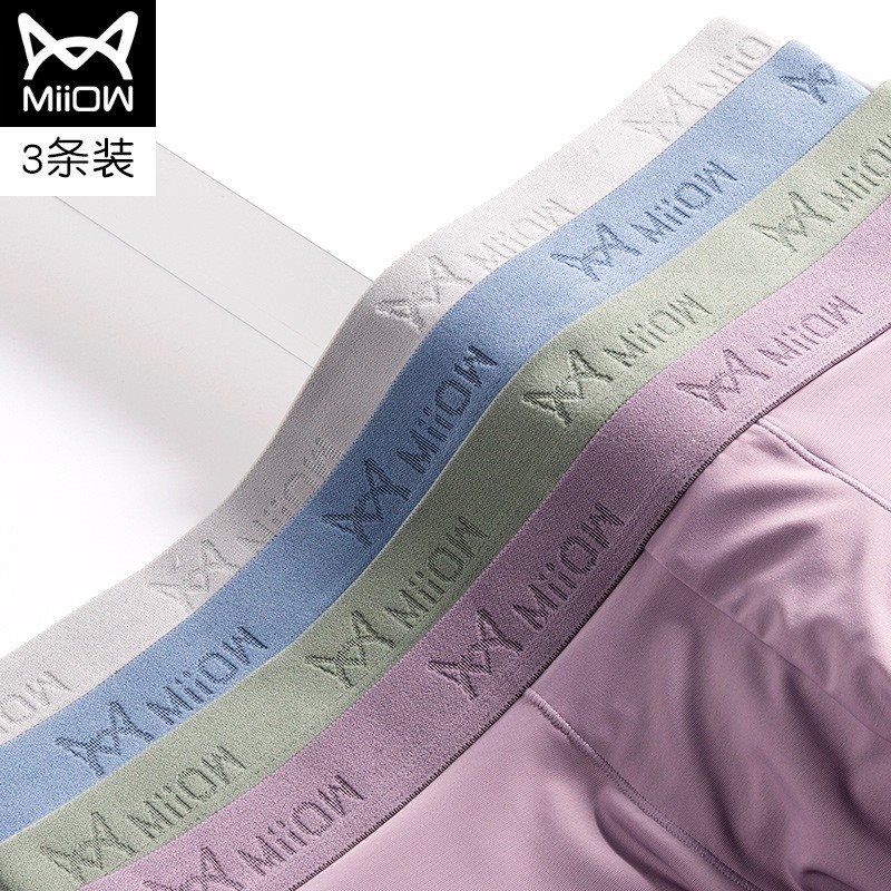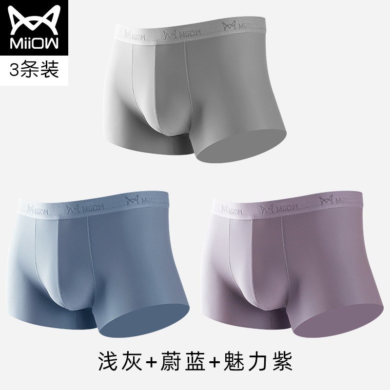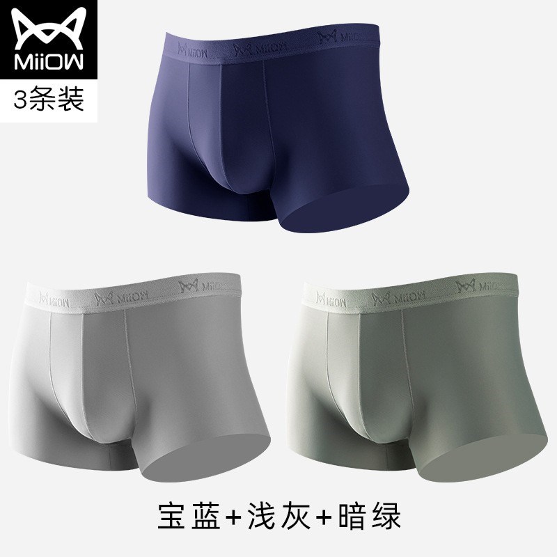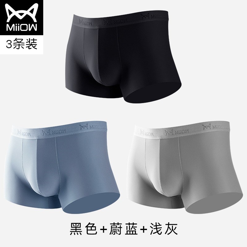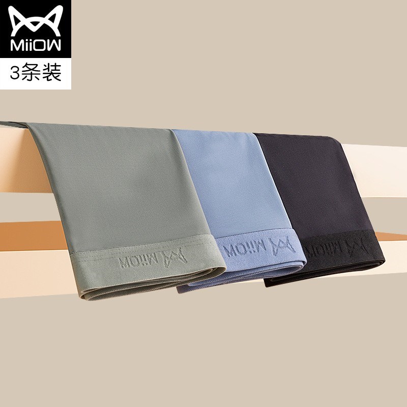 MiiOW/猫人3条装男士内裤冰丝透气无痕一片式剪裁平角裤纯色JC89639
