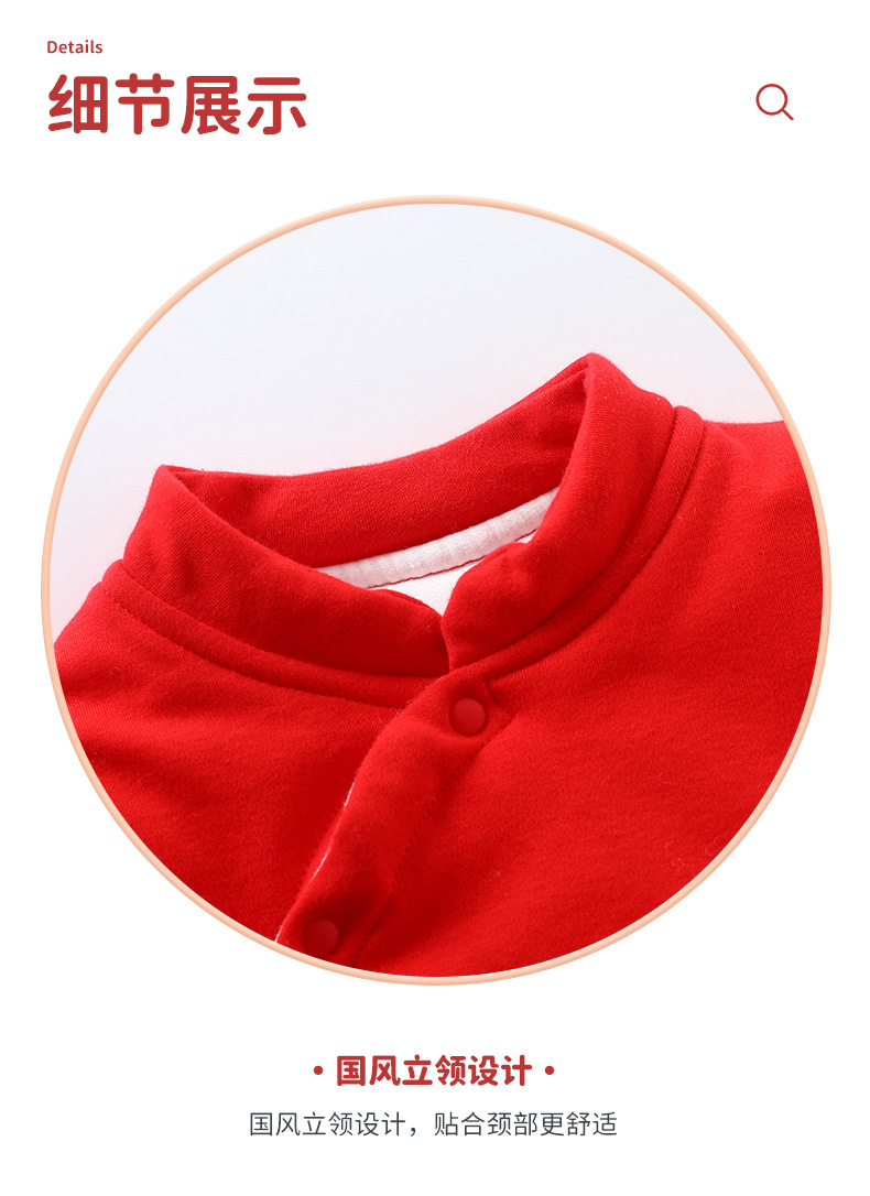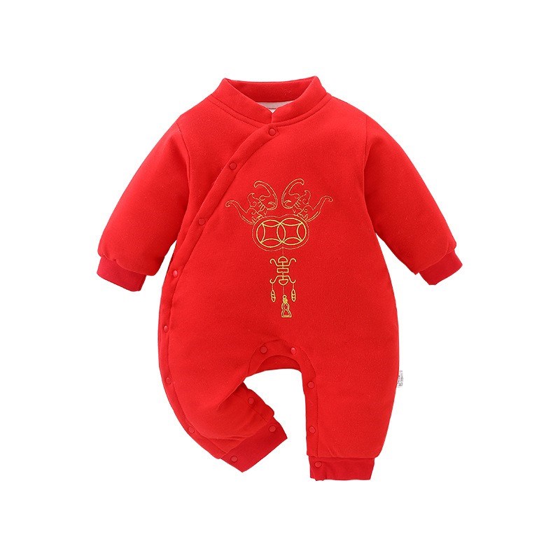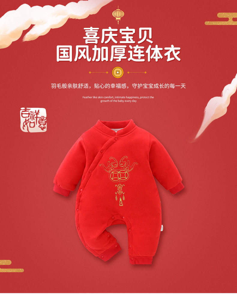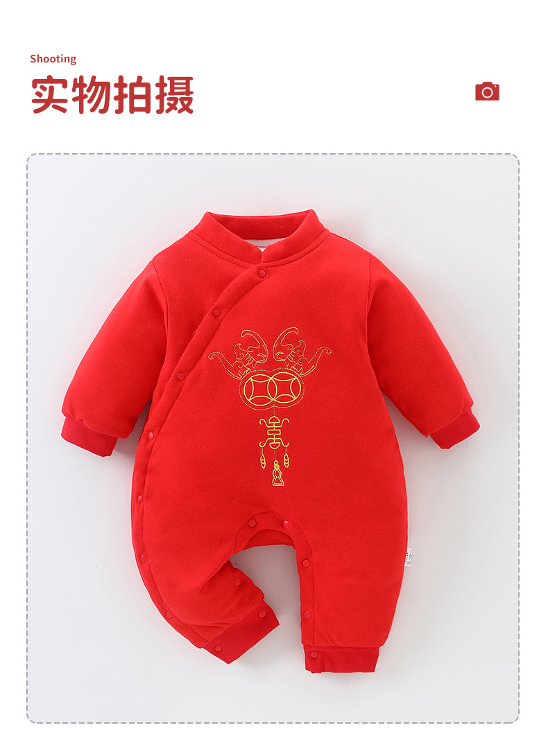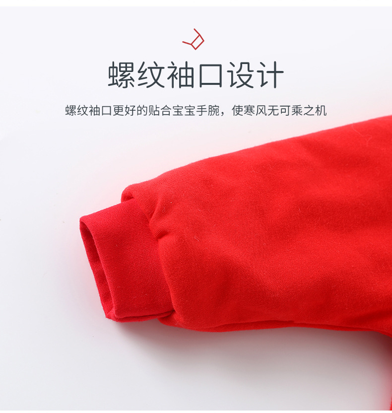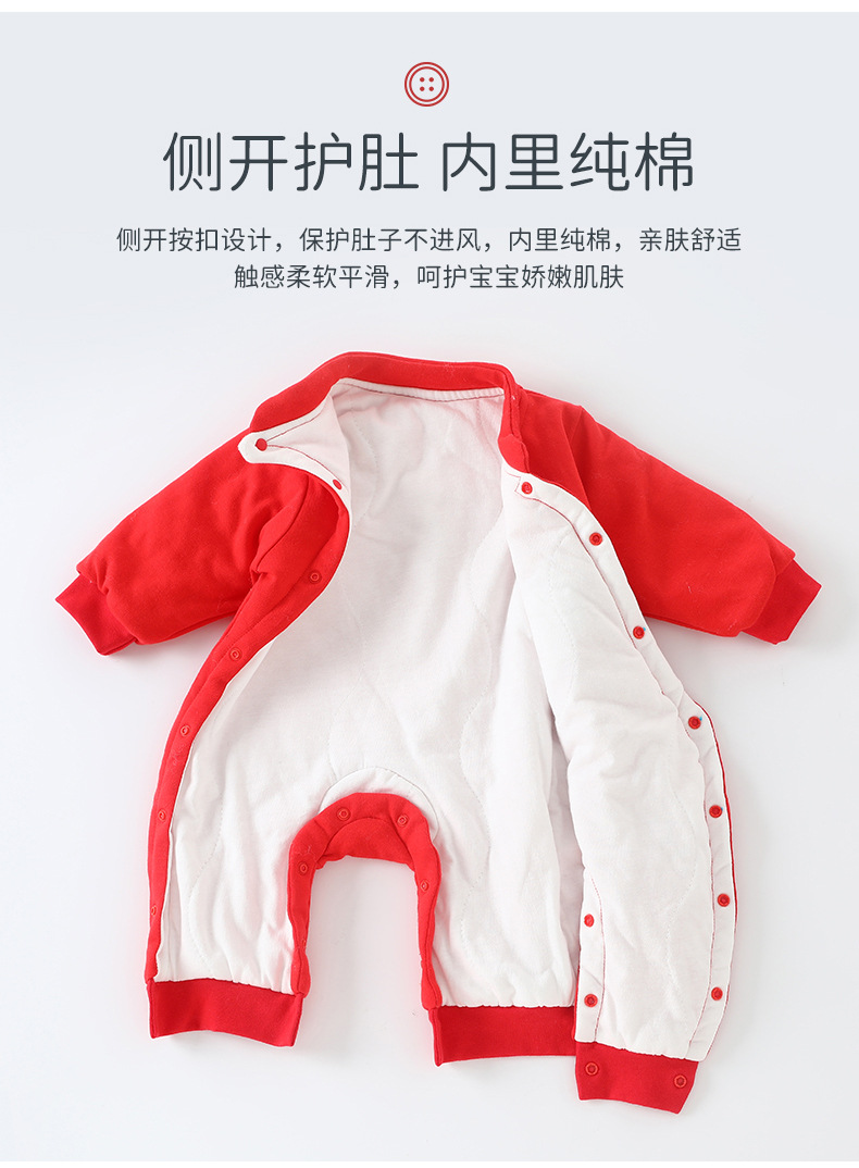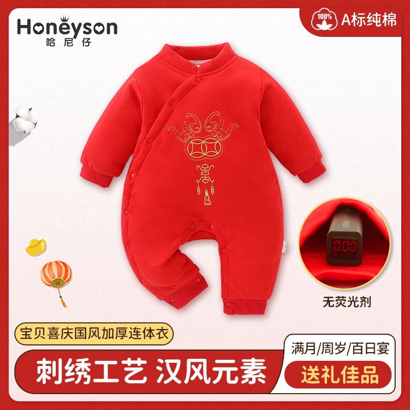Honeyson秋冬新款婴幼儿连体衣大红色拜年服宝宝满月爬服加厚保暖哈衣B081