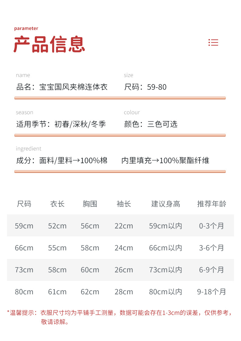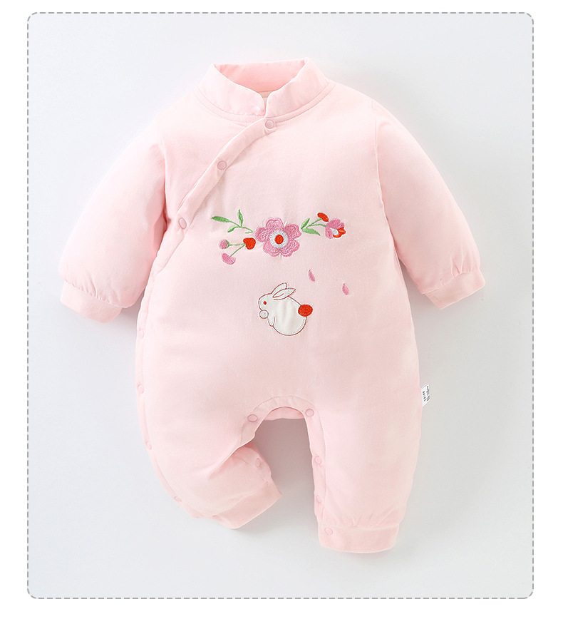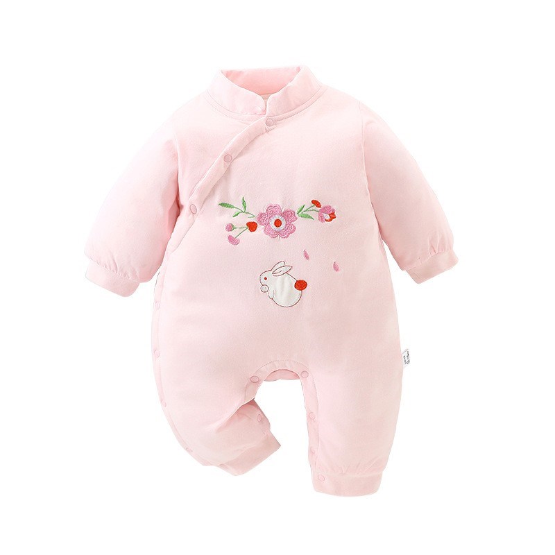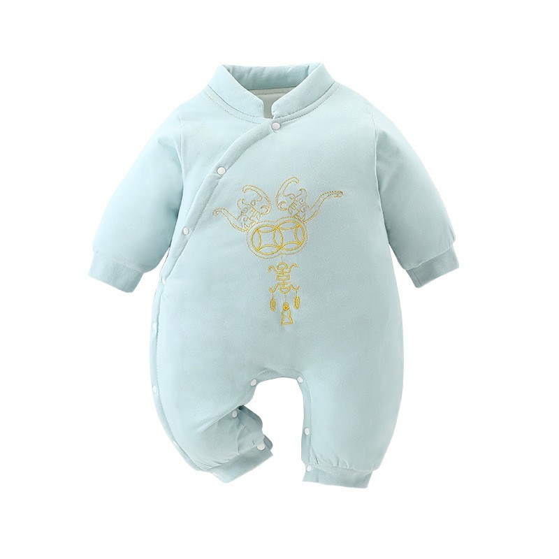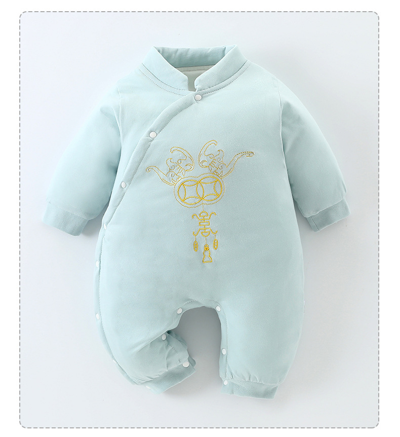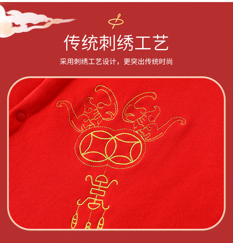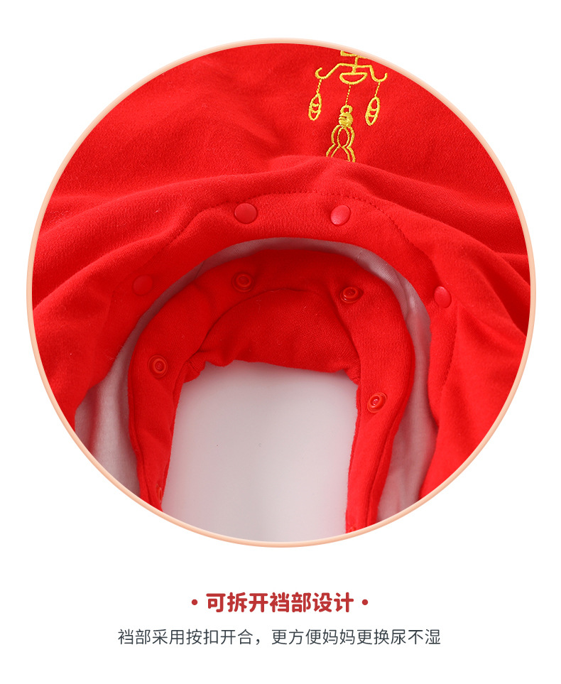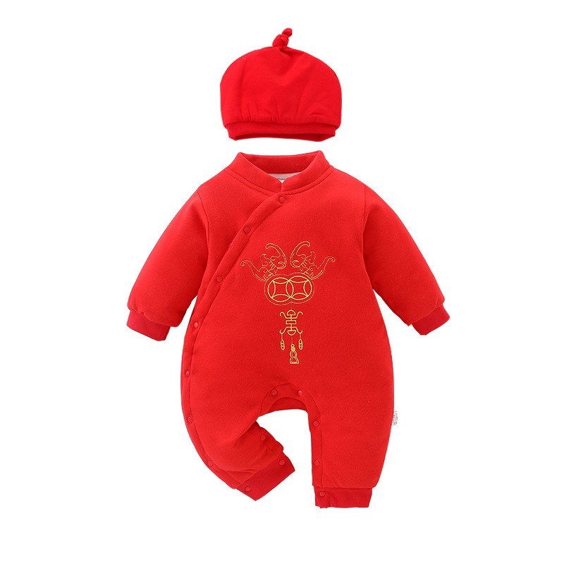 Honeyson秋冬新款婴幼儿连体衣大红色拜年服宝宝满月爬服加厚保暖哈衣B081