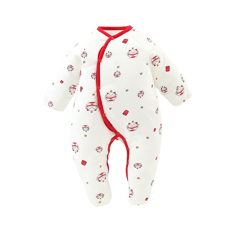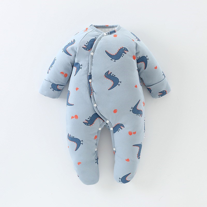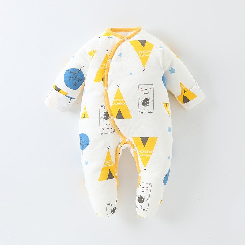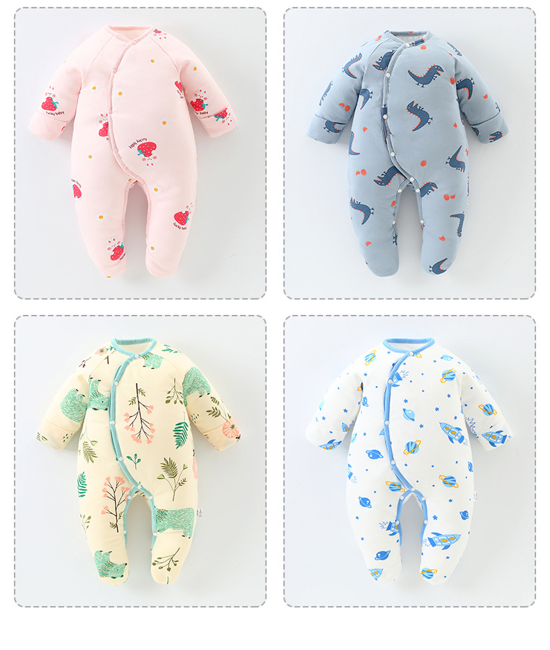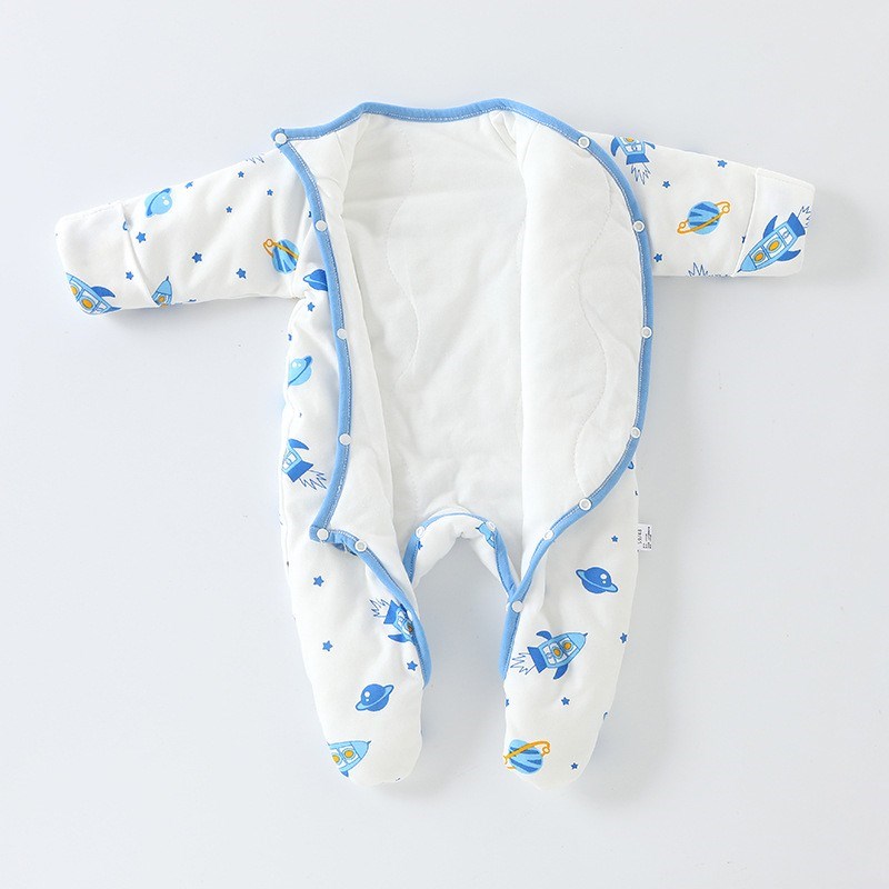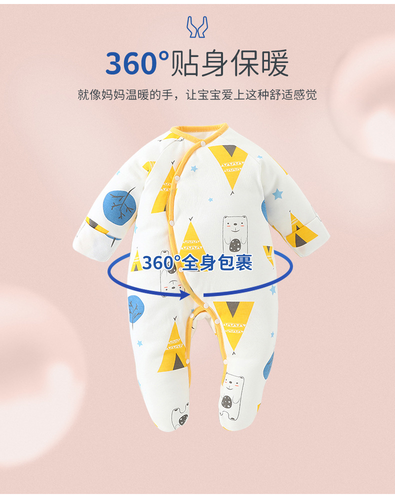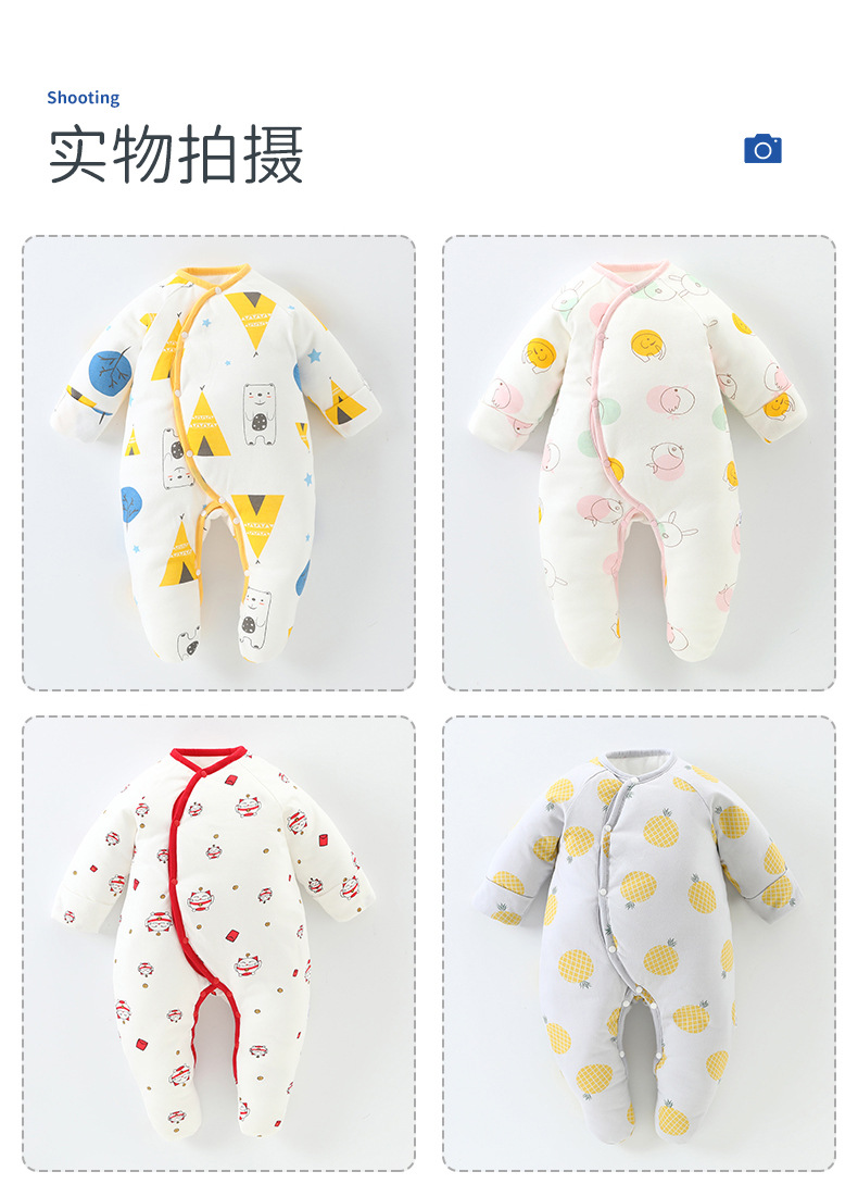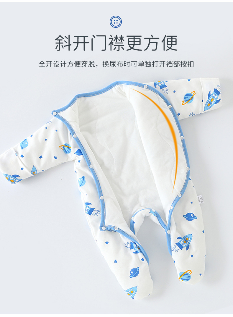 Honeyson秋冬婴儿包脚连体衣夹棉新生儿纯棉棉服外出保暖哈衣连脚抱衣A081