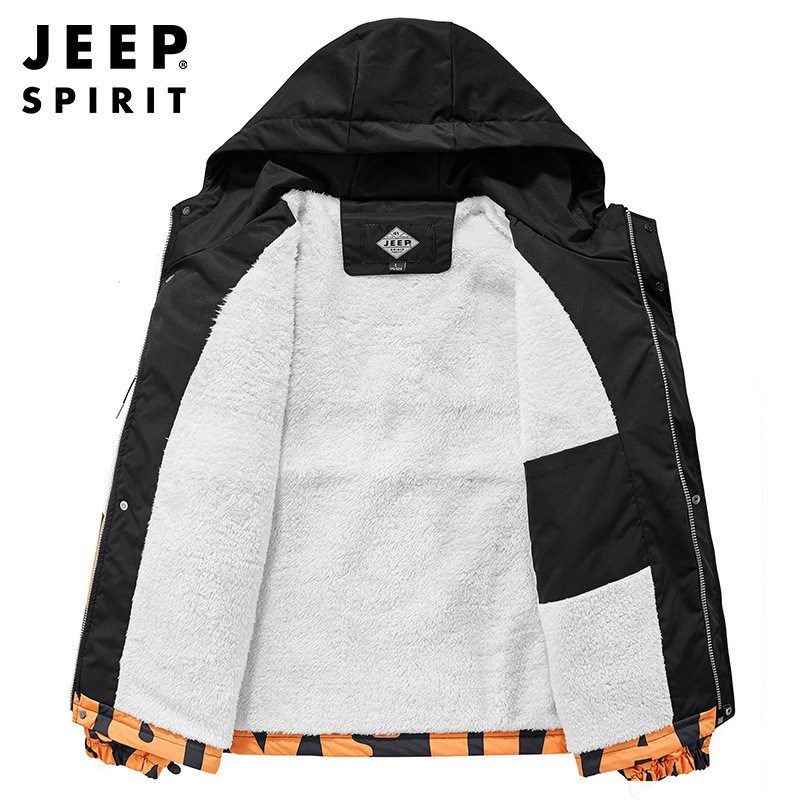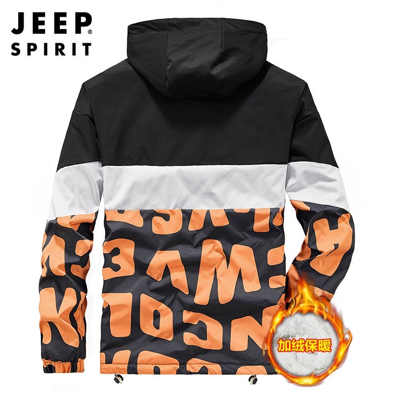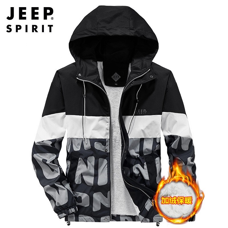 JEEP SPIRIT新款外套男秋冬加绒加厚连帽夹克上衣宽松加大码运动茄克潮男XZS1115