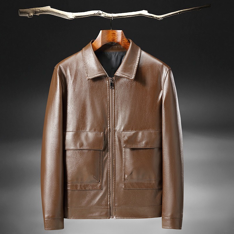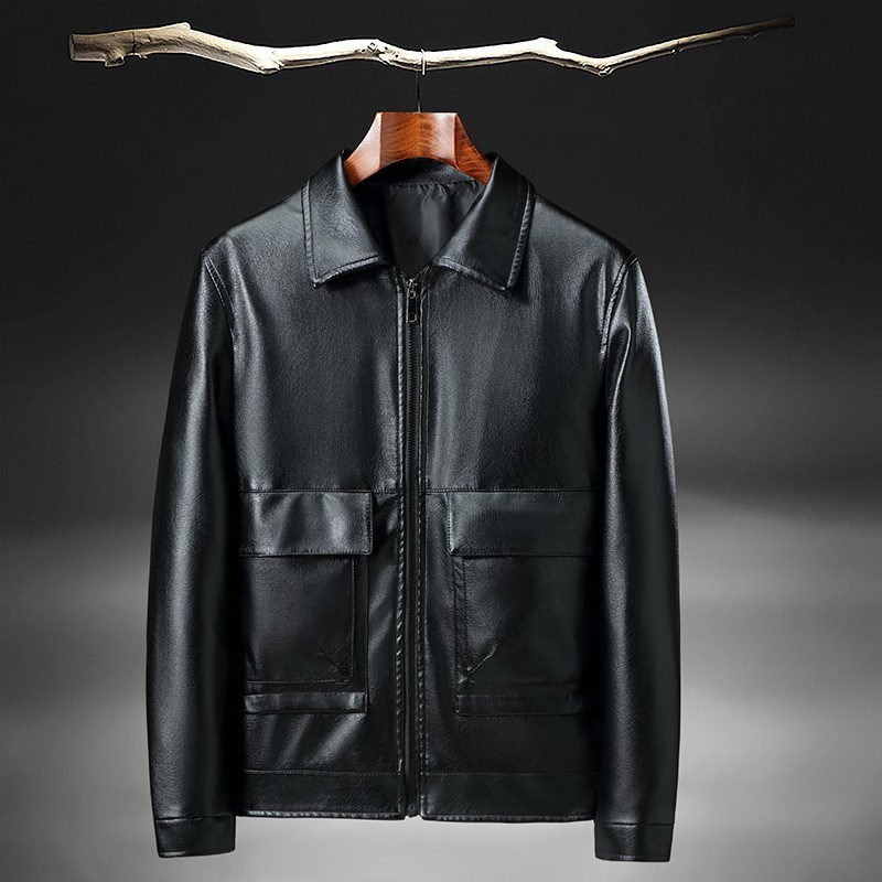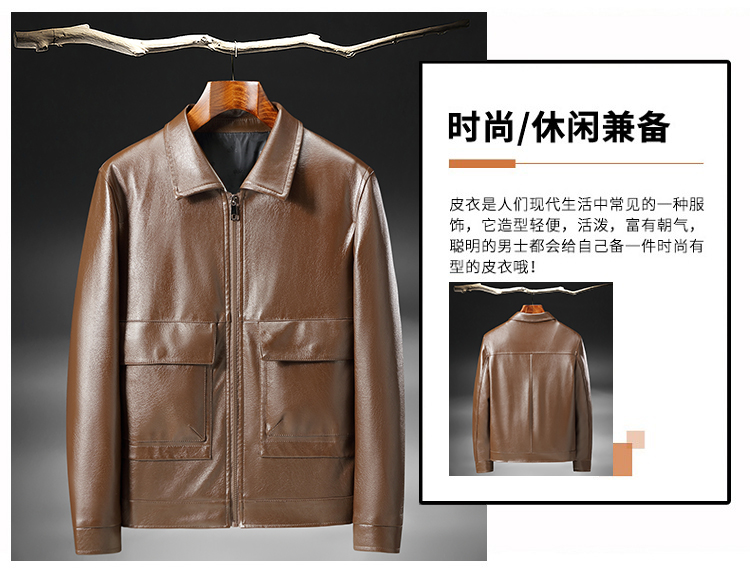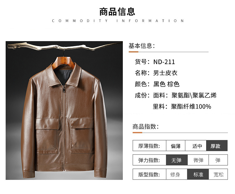 奢苑春秋款水洗皮大气简约保暖皮衣 黑色 56码 ND-211