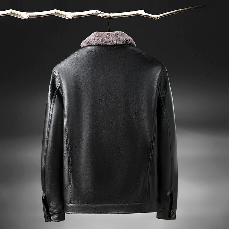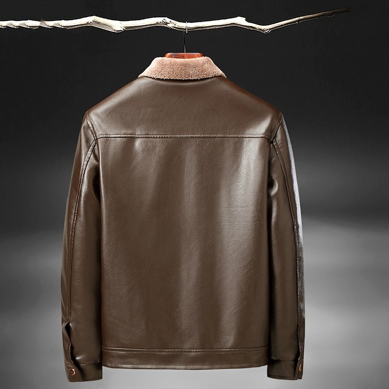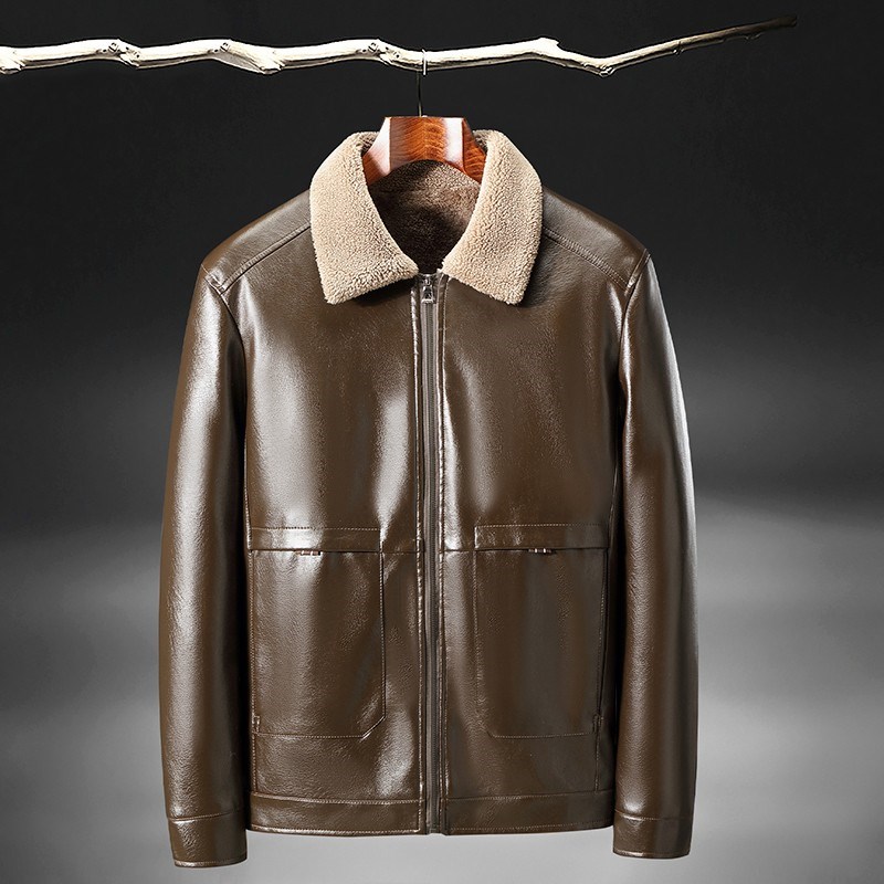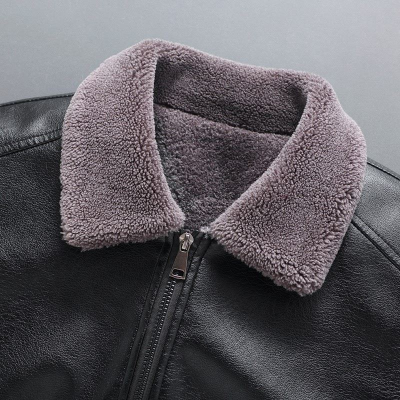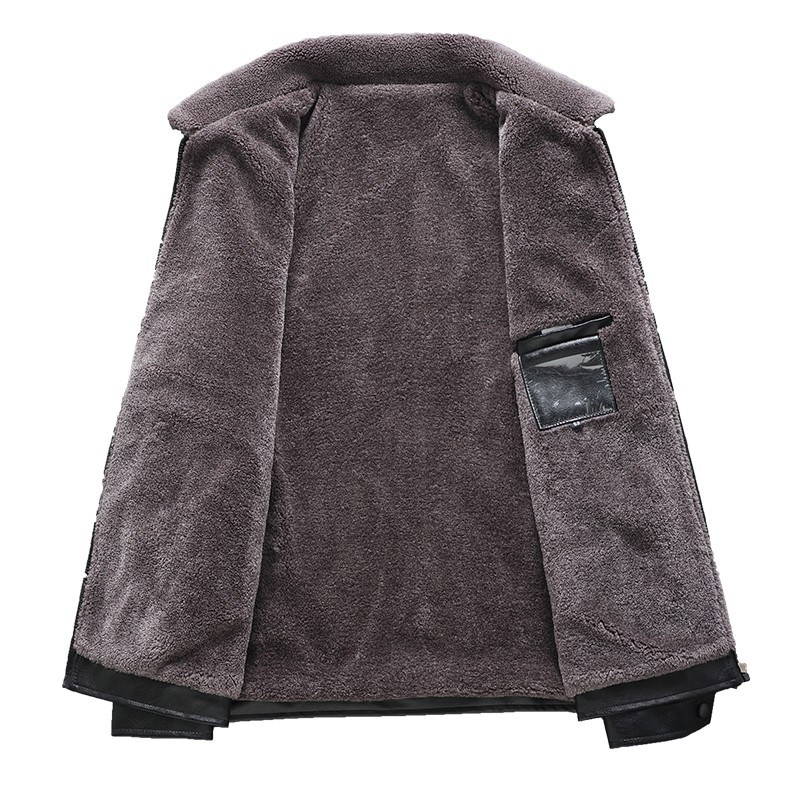 奢苑冬款皮毛一体款加厚保暖小翻领仿鹿纹皮衣 黑色 58码 PF-21