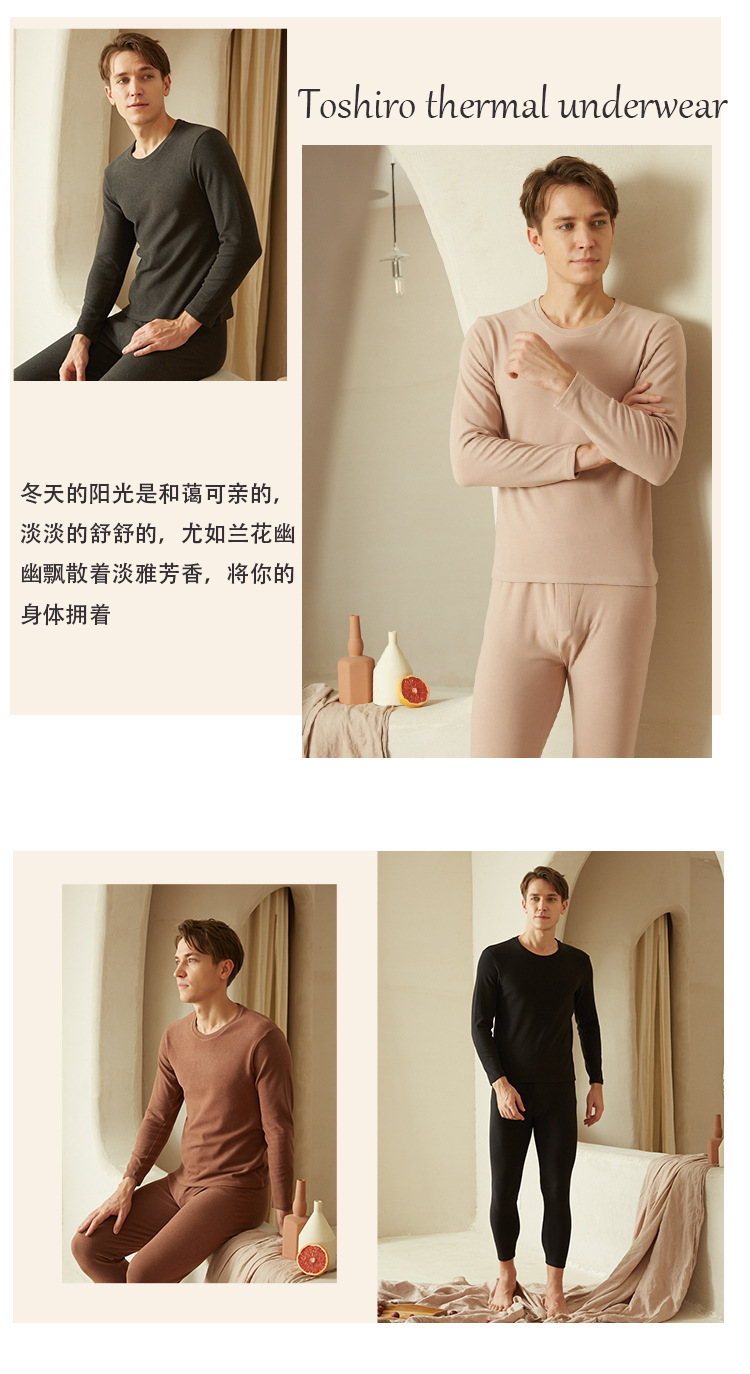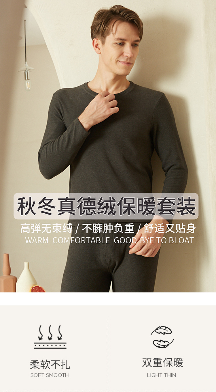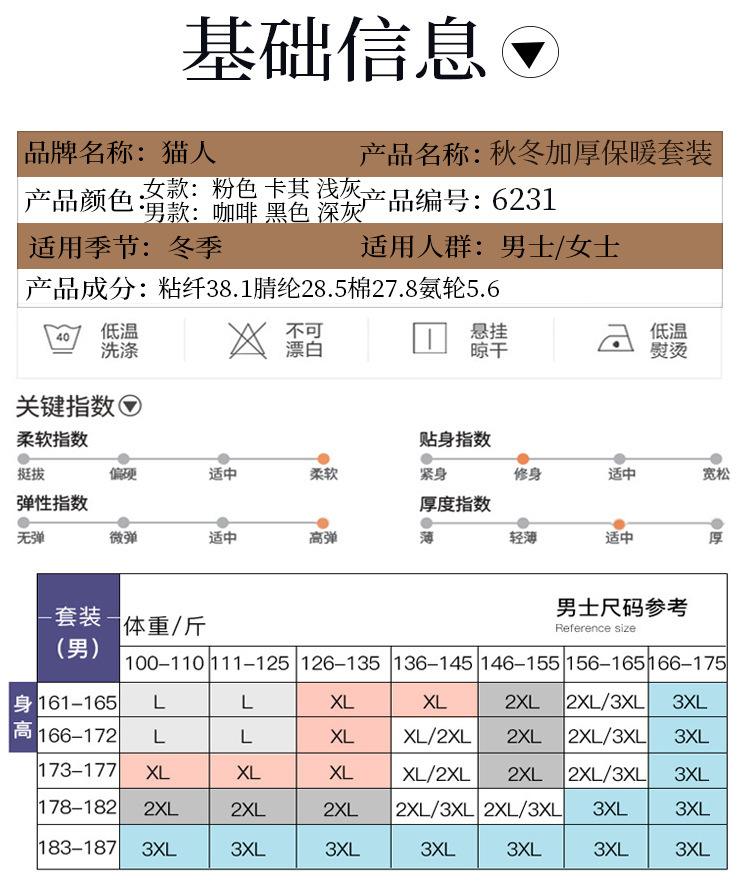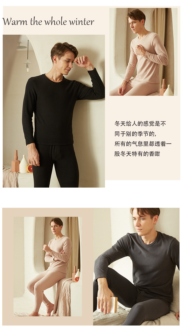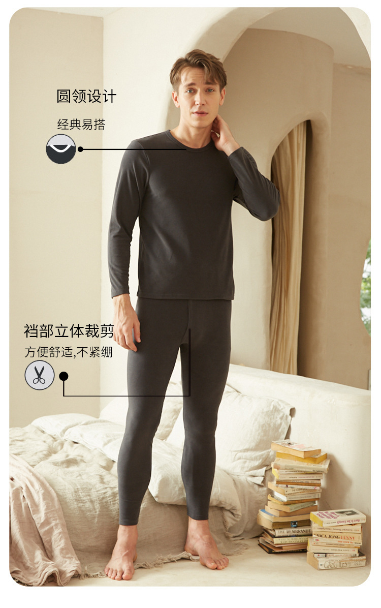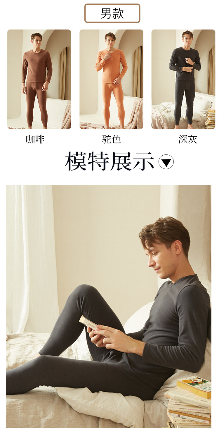 MiiOW/猫人新款情侣保暖内衣男套装女圆领德绒爆暖冬季保暖套装 M6232
