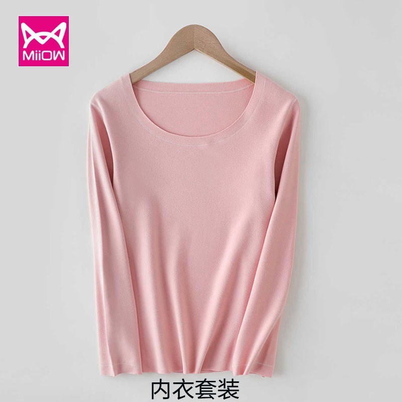 MiiOW/猫人新款情侣保暖内衣男套装女圆领德绒爆暖冬季保暖套装 M6231