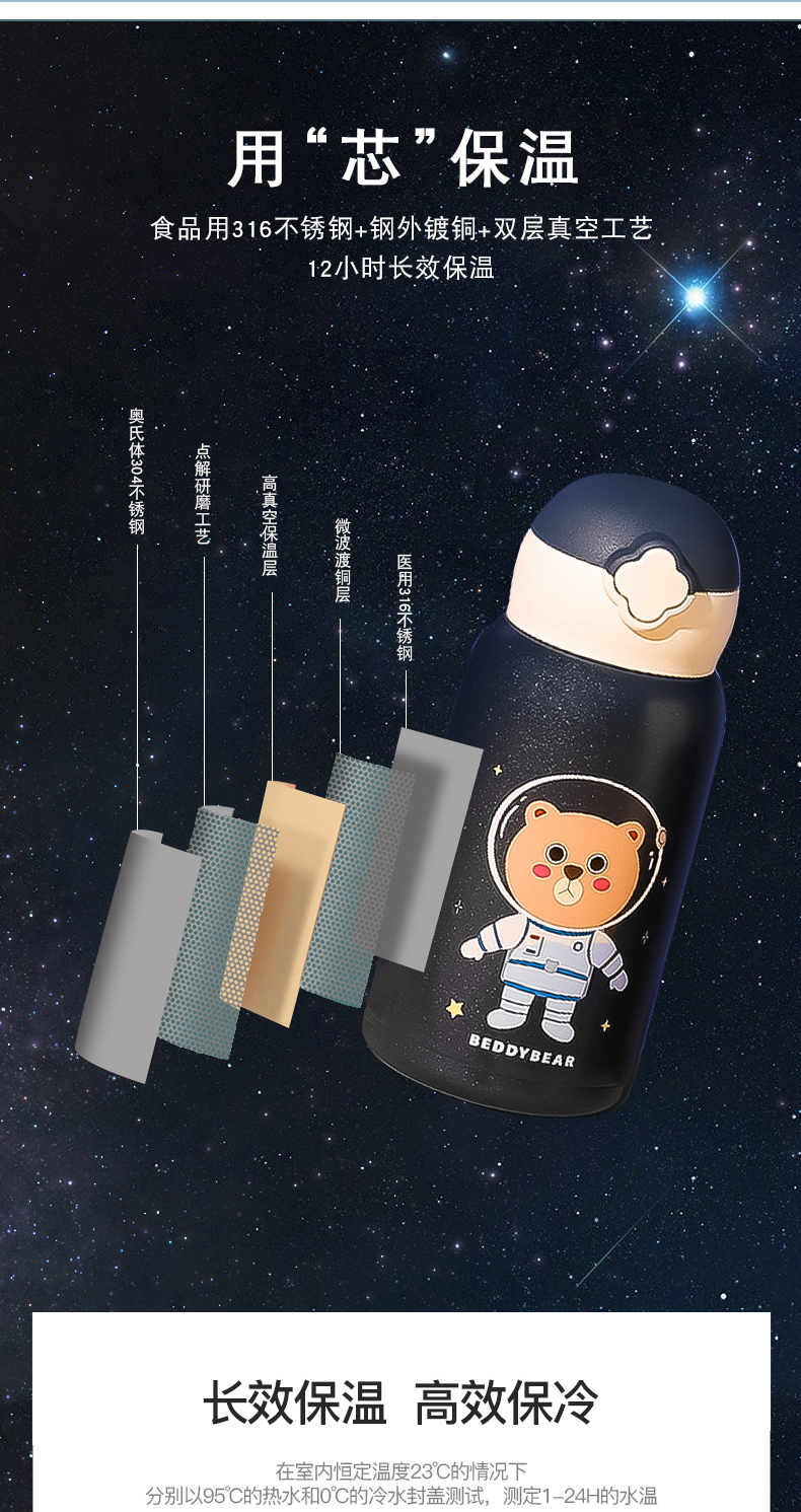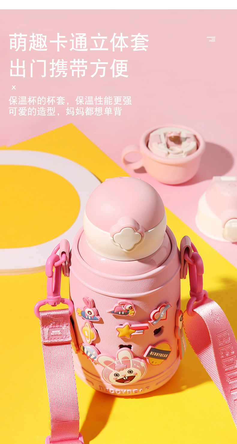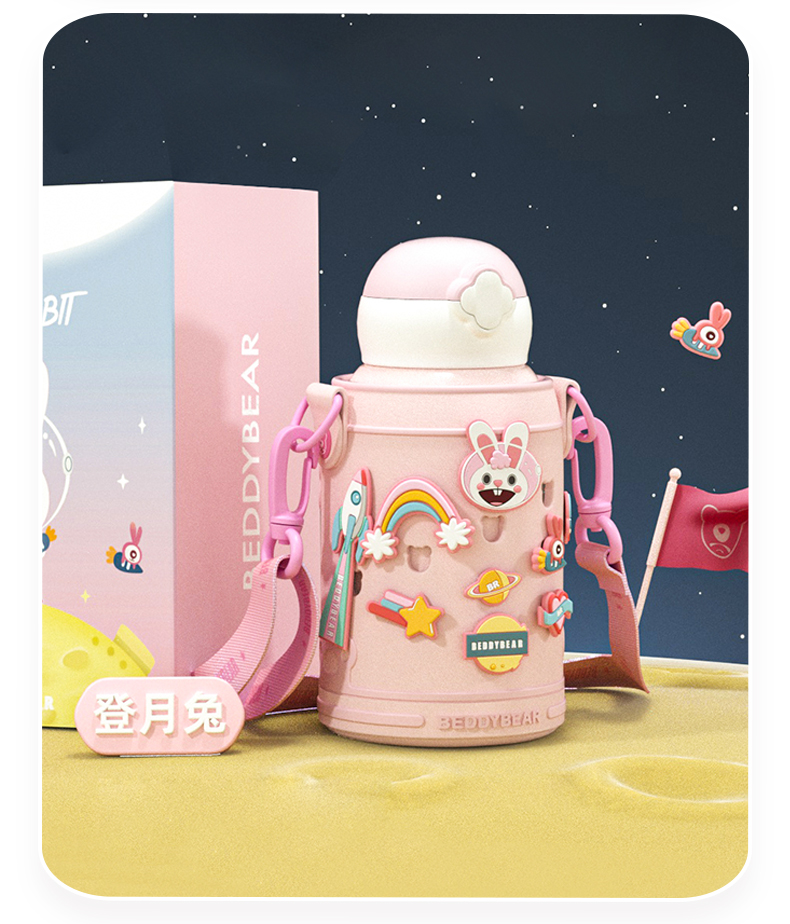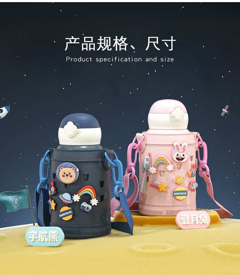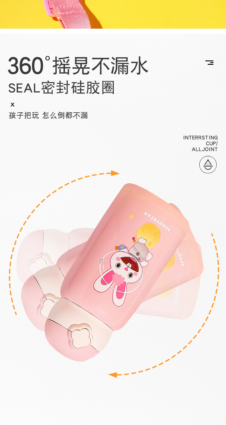 韩版杯具熊洞洞杯登月兔儿童保温杯水壶带吸管两用宝宝学生幼儿园