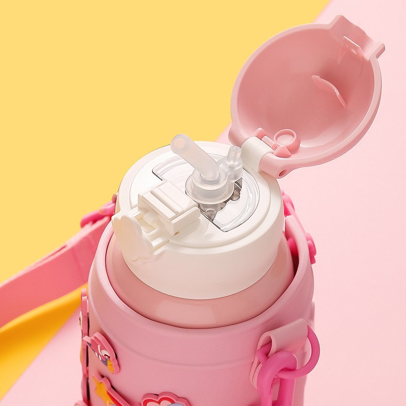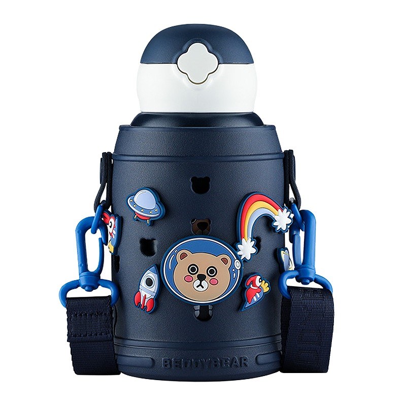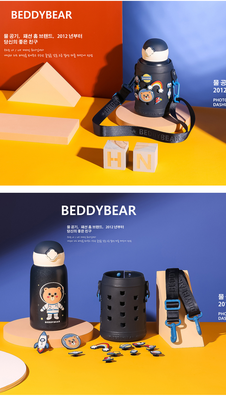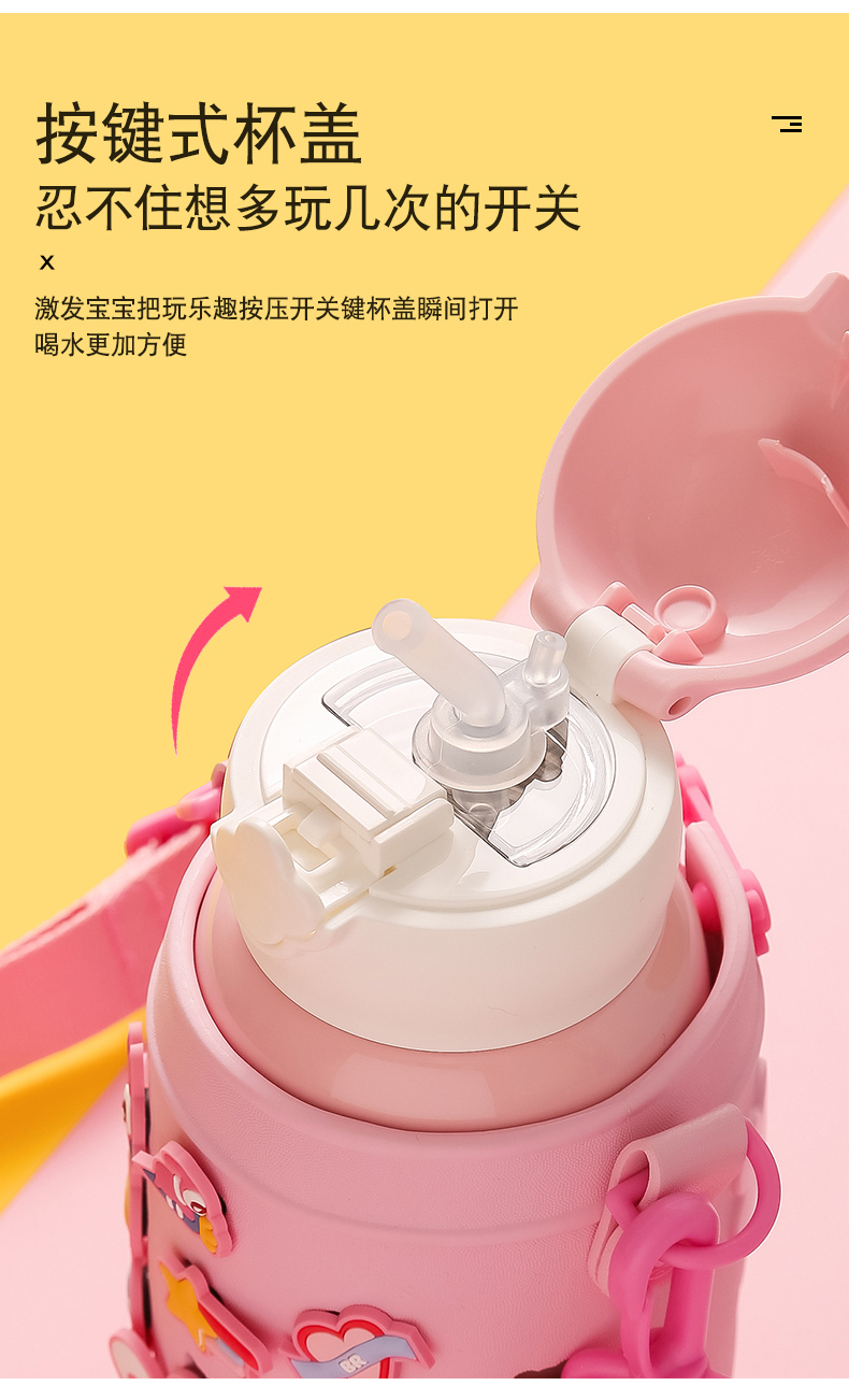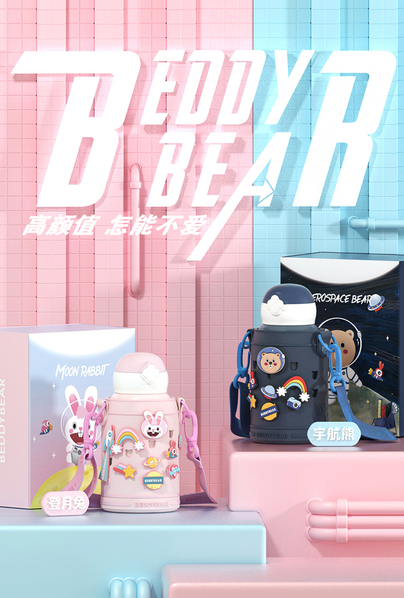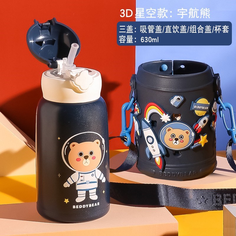 韩版杯具熊洞洞杯登月兔儿童保温杯水壶带吸管两用宝宝学生幼儿园
