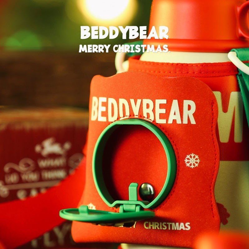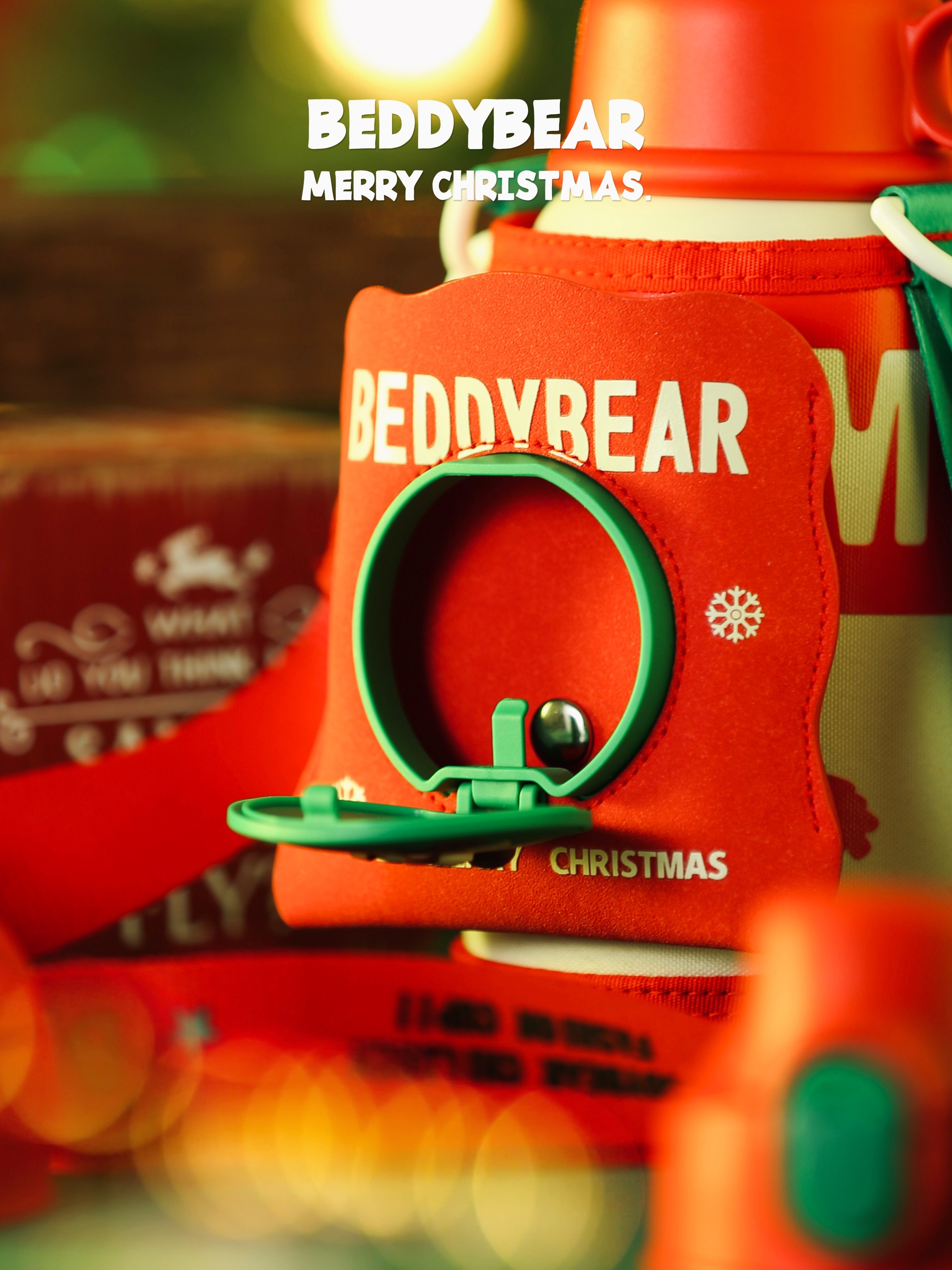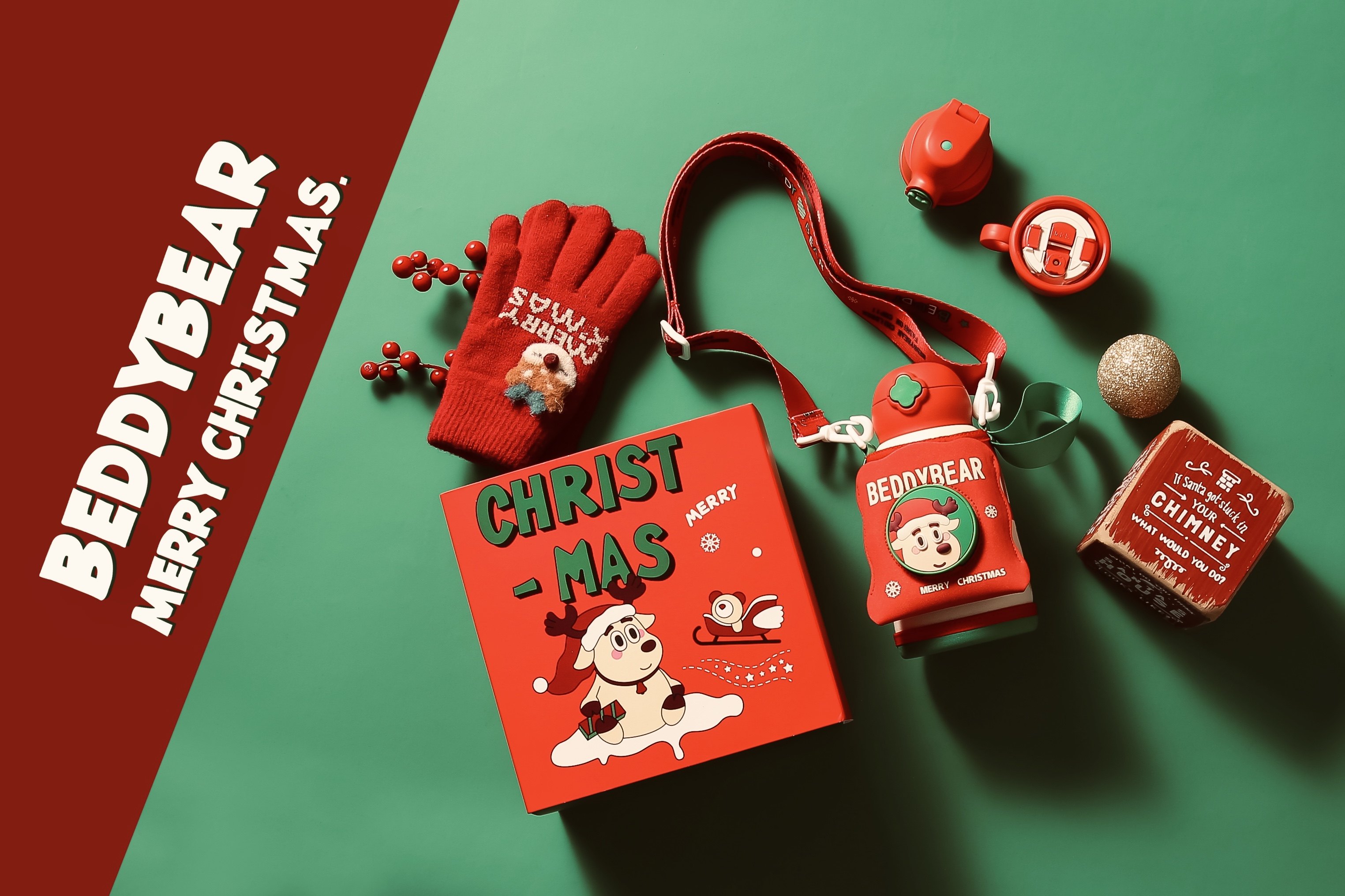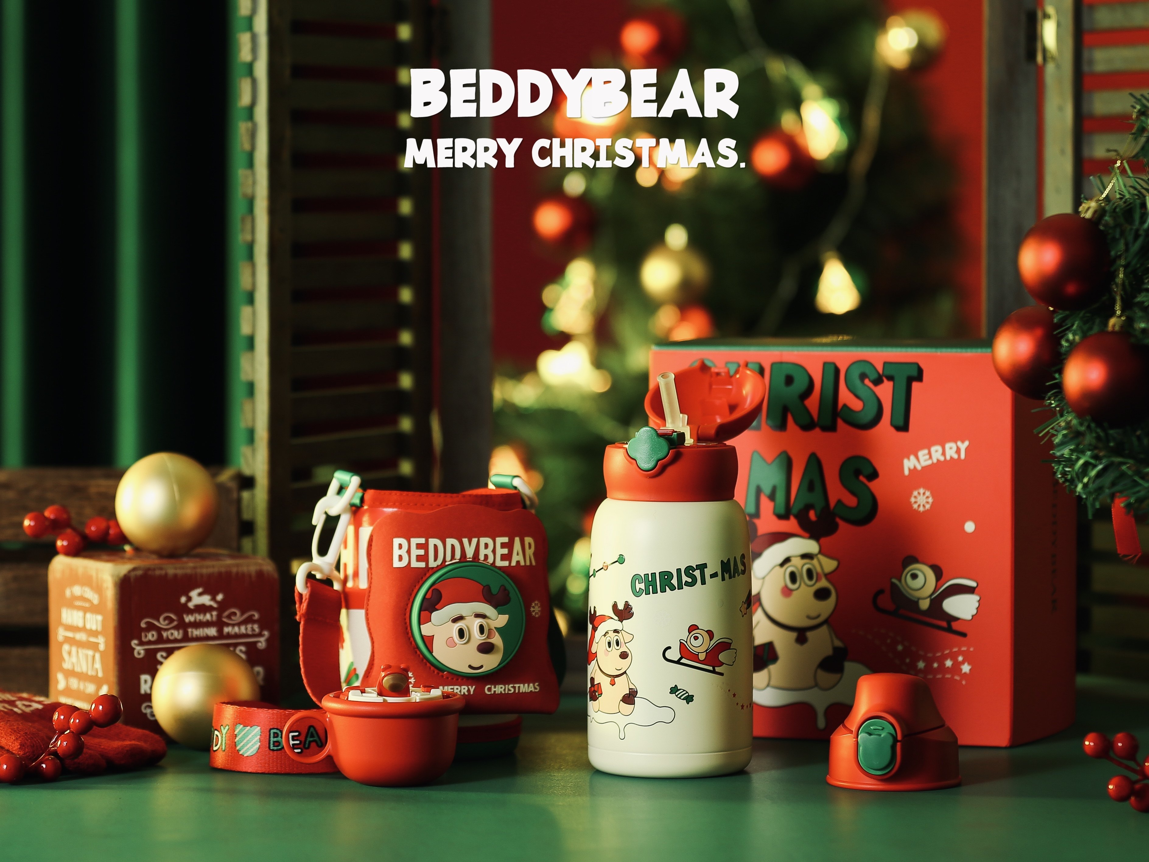 杯具熊圣诞保温杯儿童水壶带吸管宝宝学生便携防漏水湿巾杯子