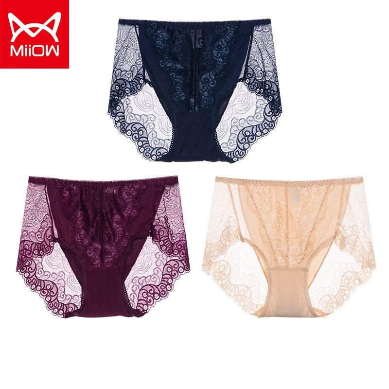 MiiOW/猫人蕾丝内裤女透气性感中腰大码舒适夏季薄款女士三角内裤JC0301