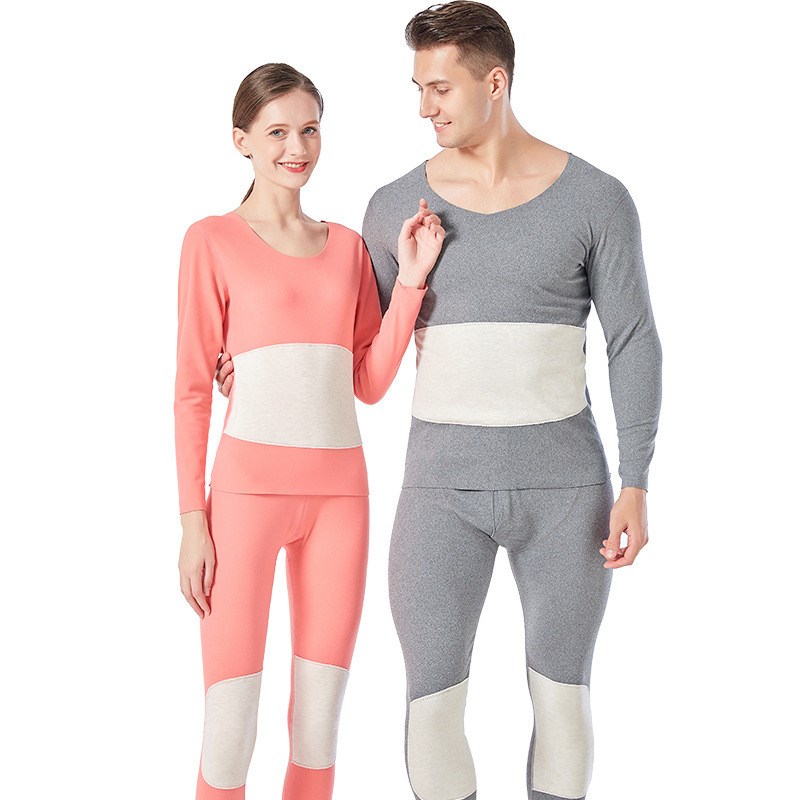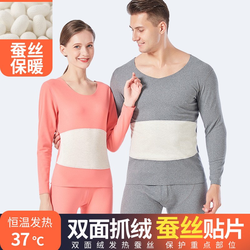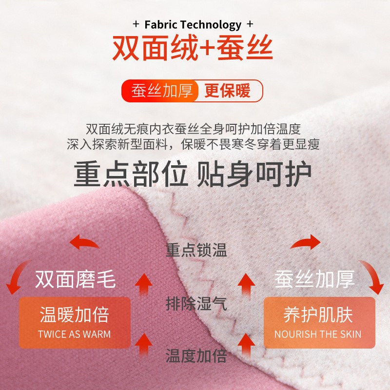 海谜璃新款蚕丝贴片德绒保暖内衣女套装秋冬无痕发热棉毛衫男士秋衣秋裤HBF2825 粉色女 XL