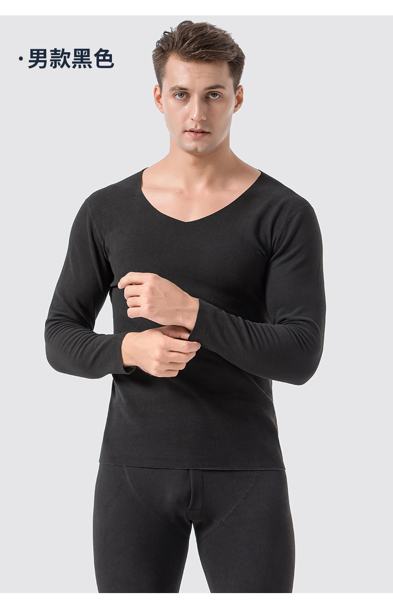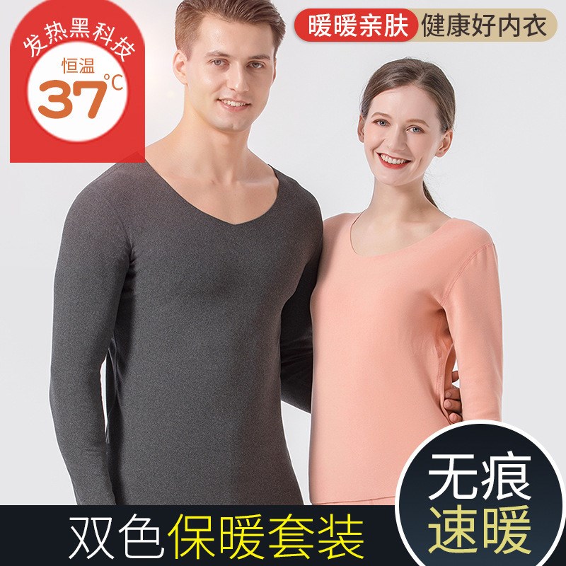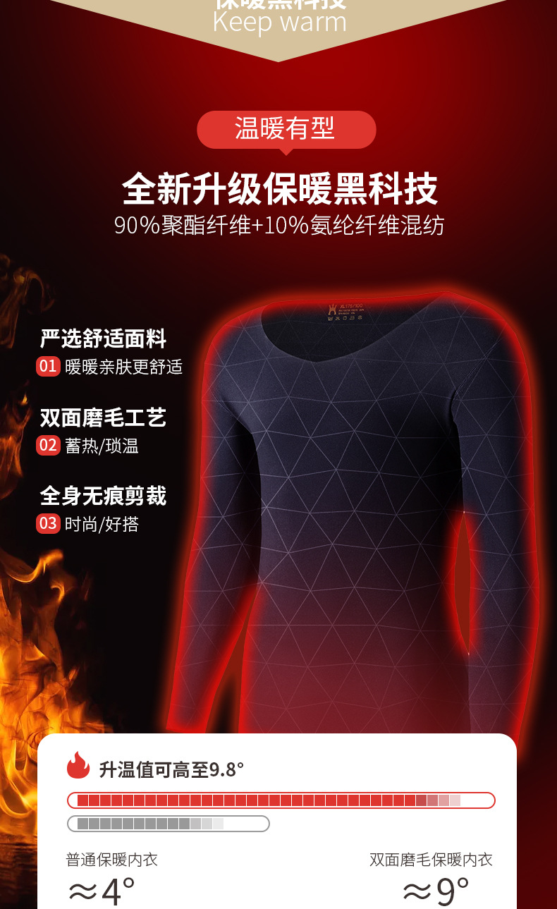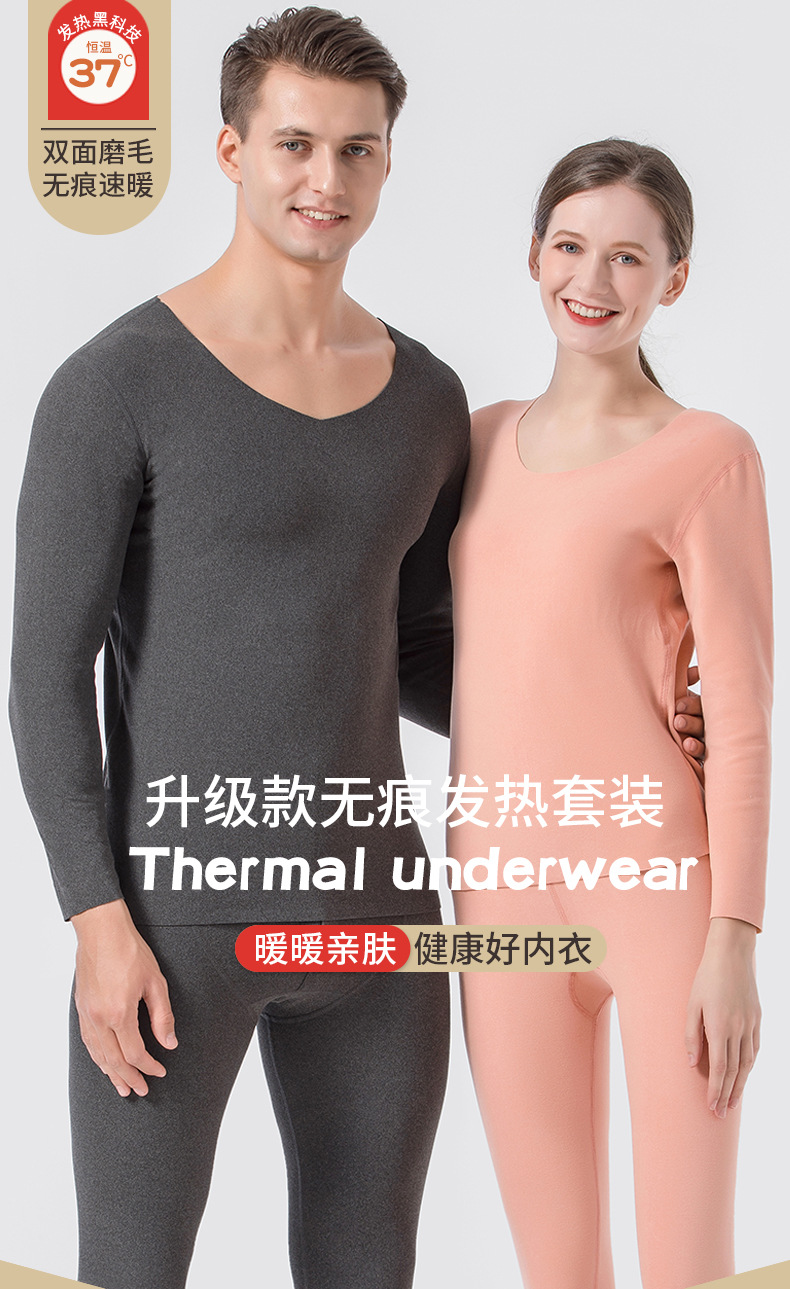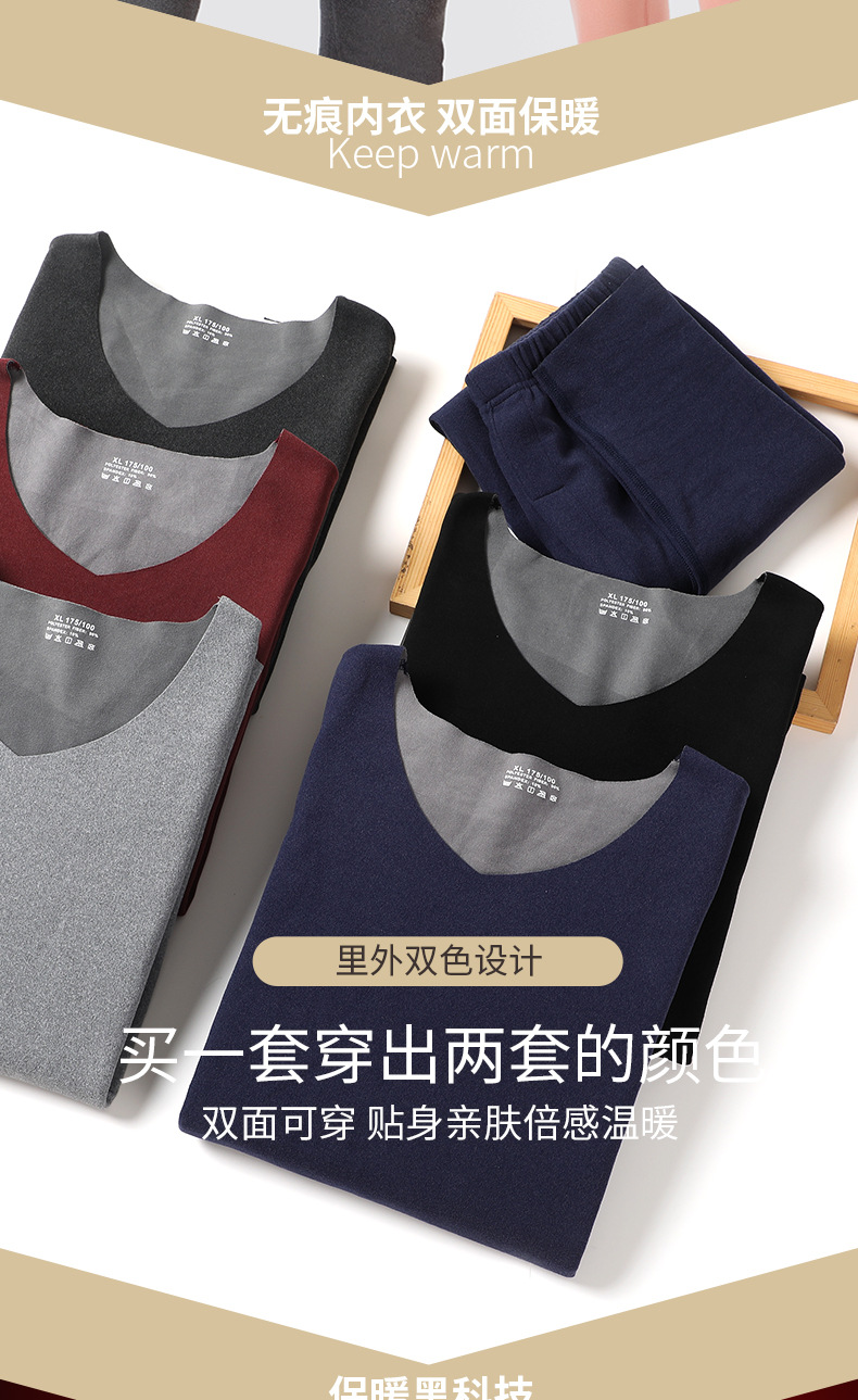 海谜璃新款无痕德绒保暖内衣女套装双色加绒加厚恒温发热男士秋衣秋裤HBF2822 黑色男 XXXL